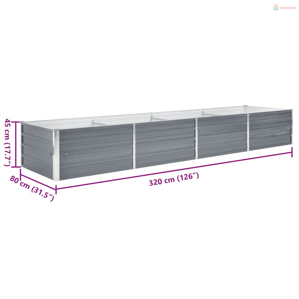 Szürke horganyzott acél kerti magaságyás 320 x 80 x 45 cm