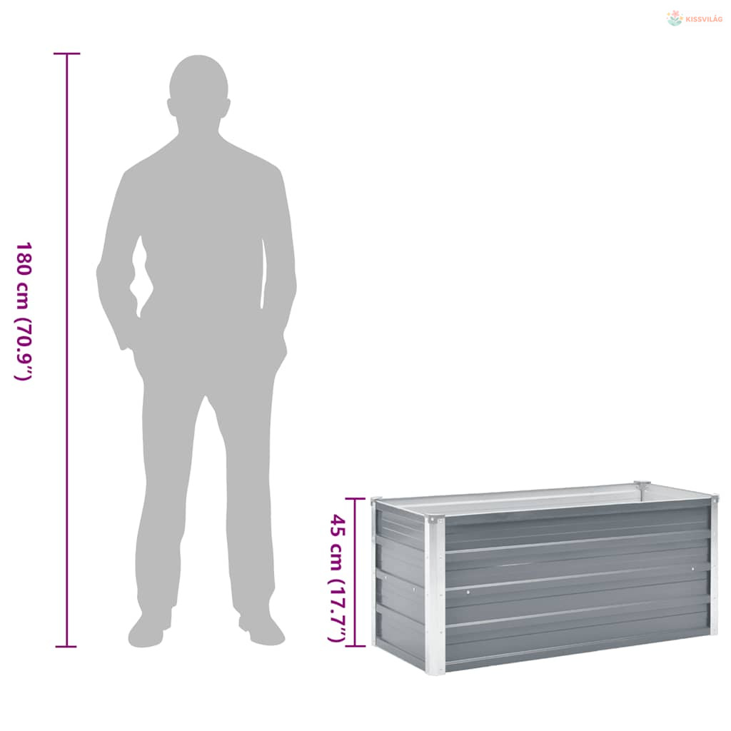Szürke horganyzott acél kerti magaságyás 100 x 40 x 45 cm