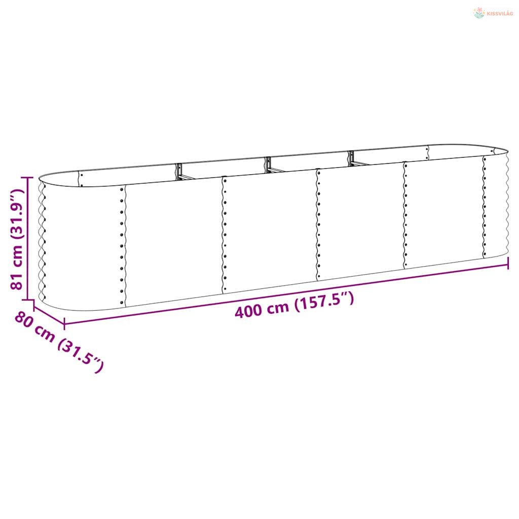 Ezüstszínű horganyzott acél kerti magaságyás 400 x 80 x 81 cm