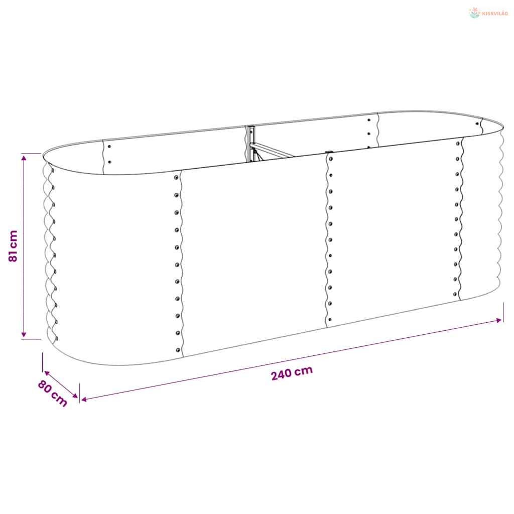 Szürke horganyzott acél kerti magaságyás 240 x 80 x 81 cm