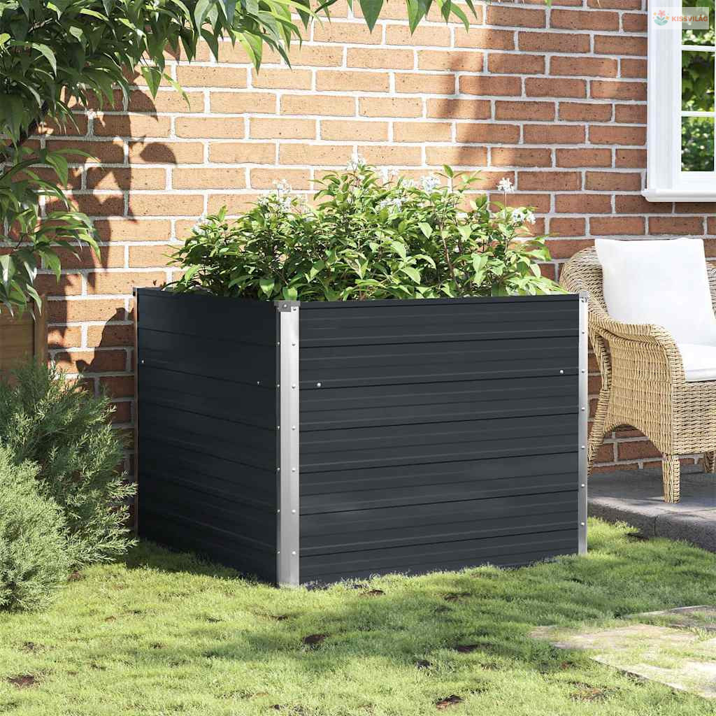 Antracitszürke horganyzott acél kerti magaságyás 100x100x77 cm