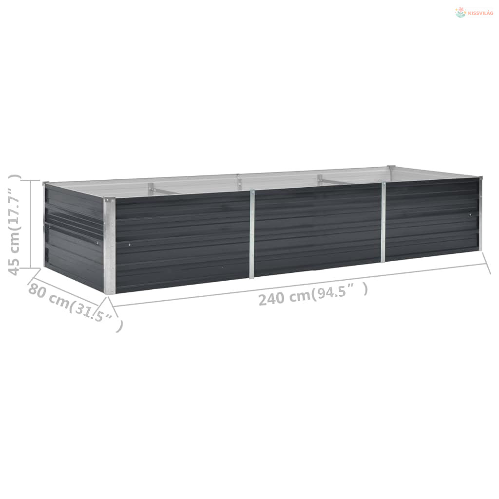 Antracitszürke horganyzott acél kerti magaságyás 240x80x45 cm