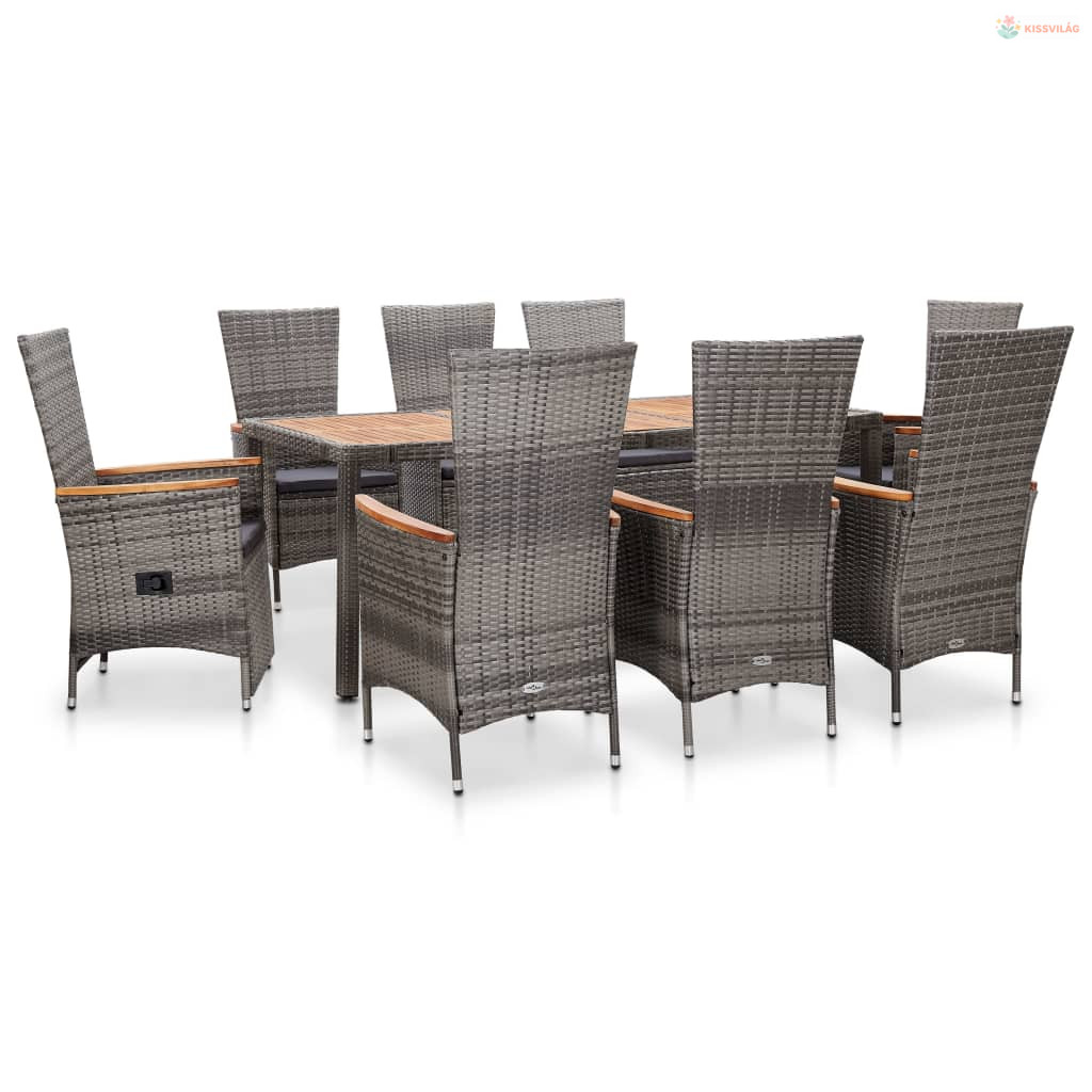 9-részes szürke polyrattan kültéri étkezőgarnitúra párnákkal