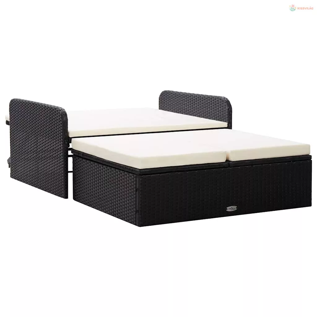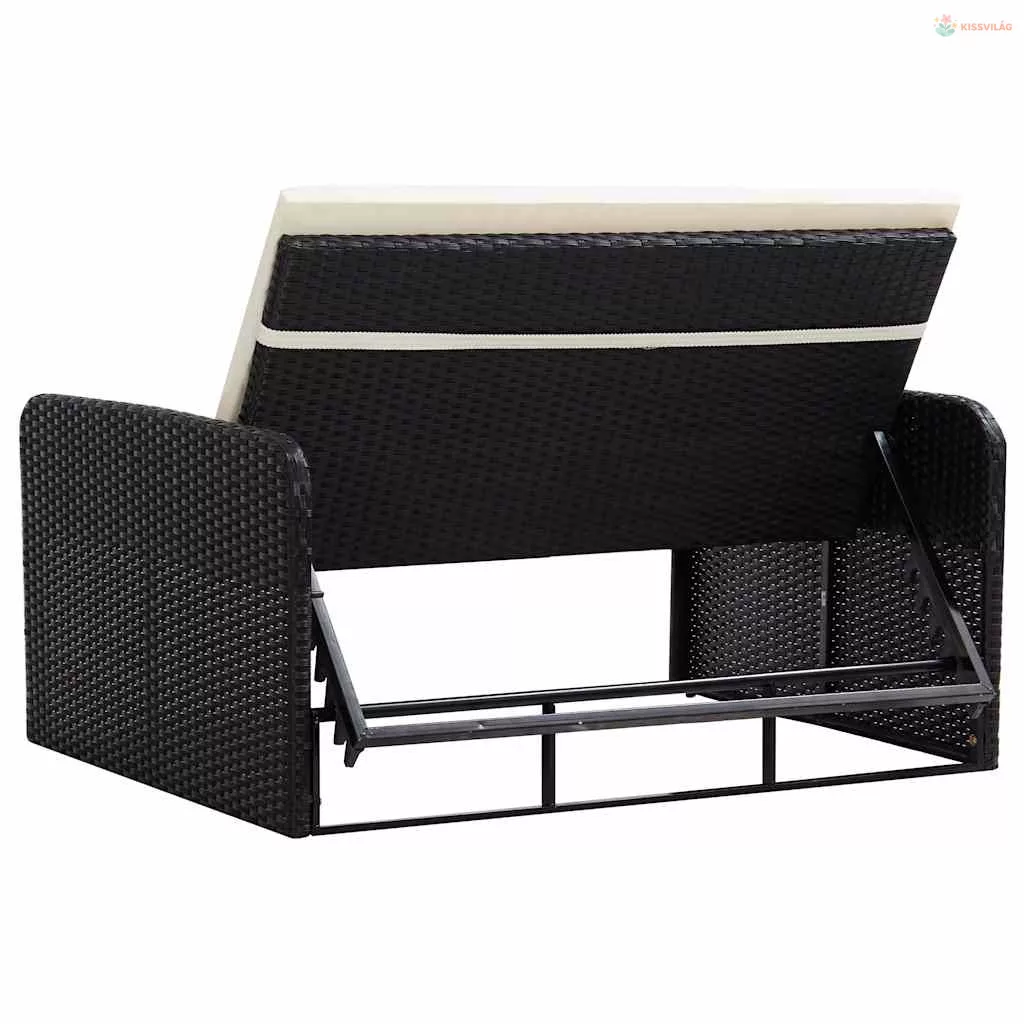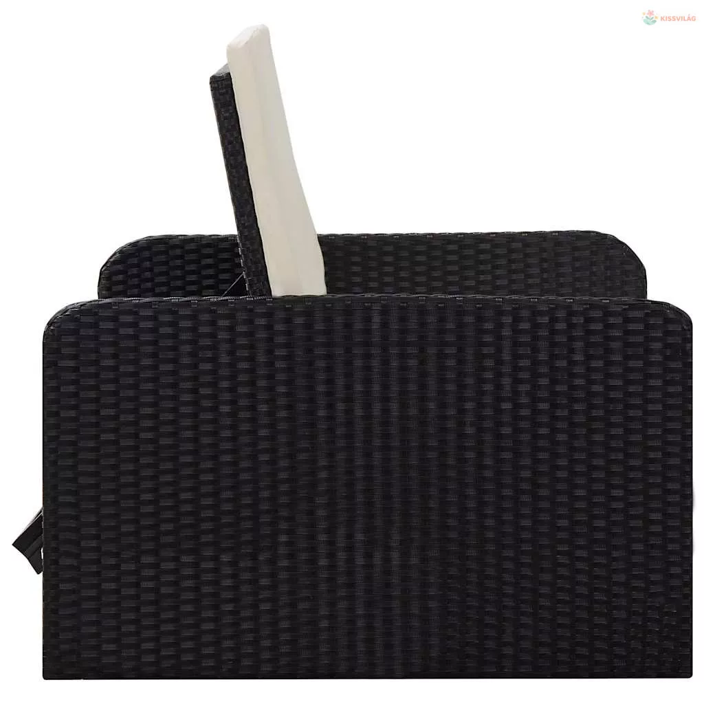 2 részes fekete polyrattan kerti bútorszett párnákkal