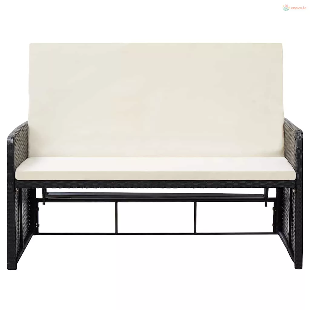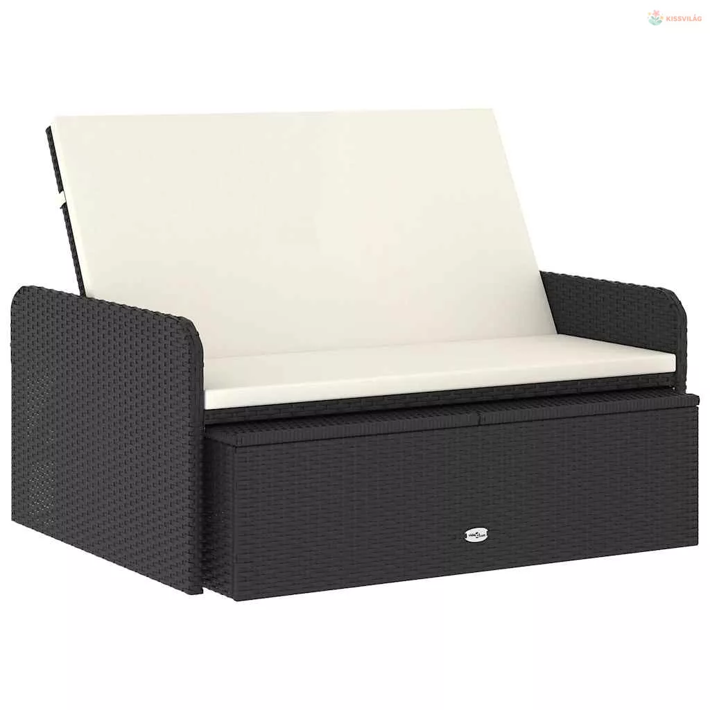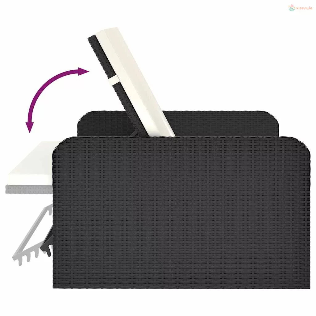 2 részes fekete polyrattan kerti bútorszett párnákkal