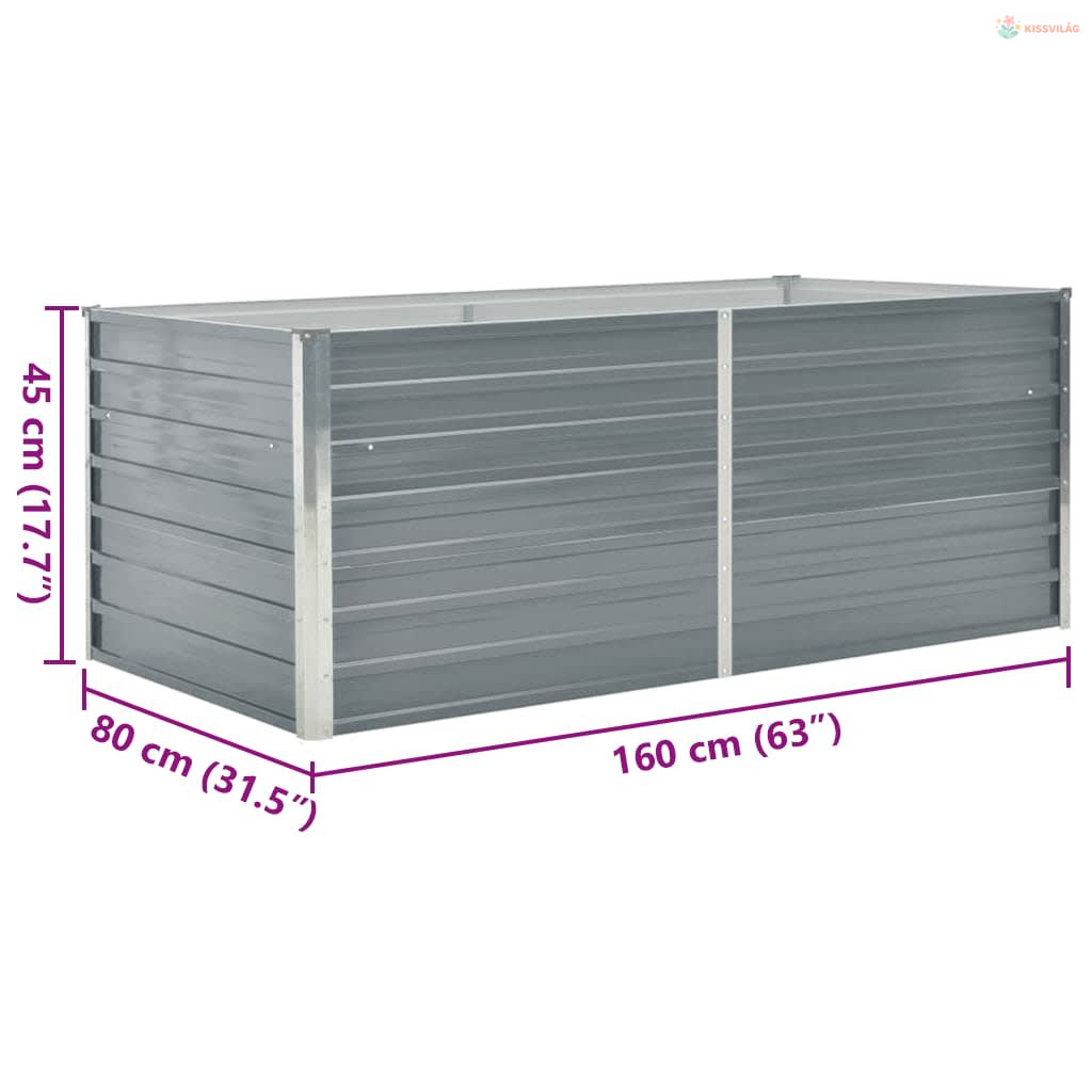 Szürke horganyzott acél kerti magaságyás 160 x 80 x 45 cm