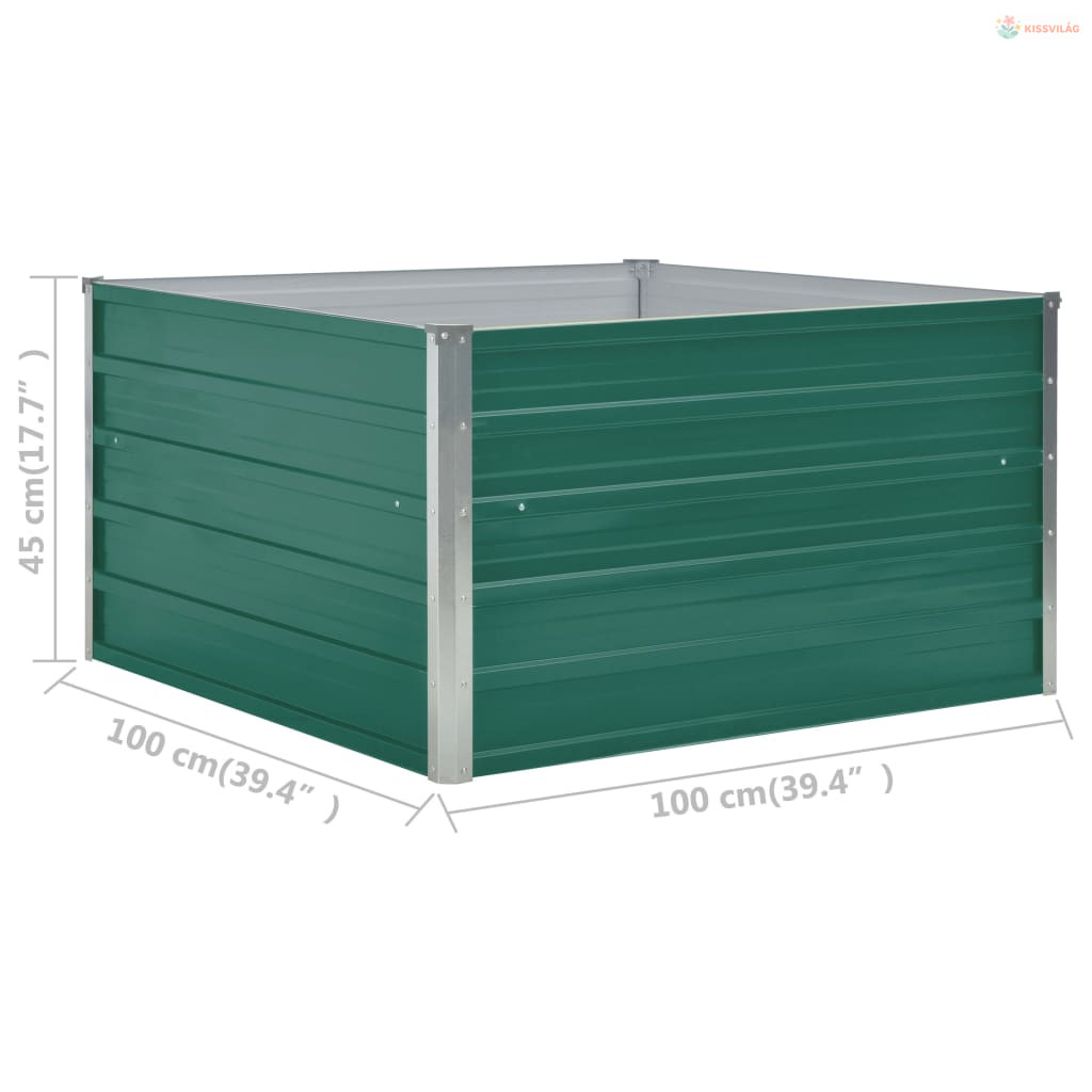 Zöld horganyzott acél kerti magaságyás 100 x 100 x 45 cm