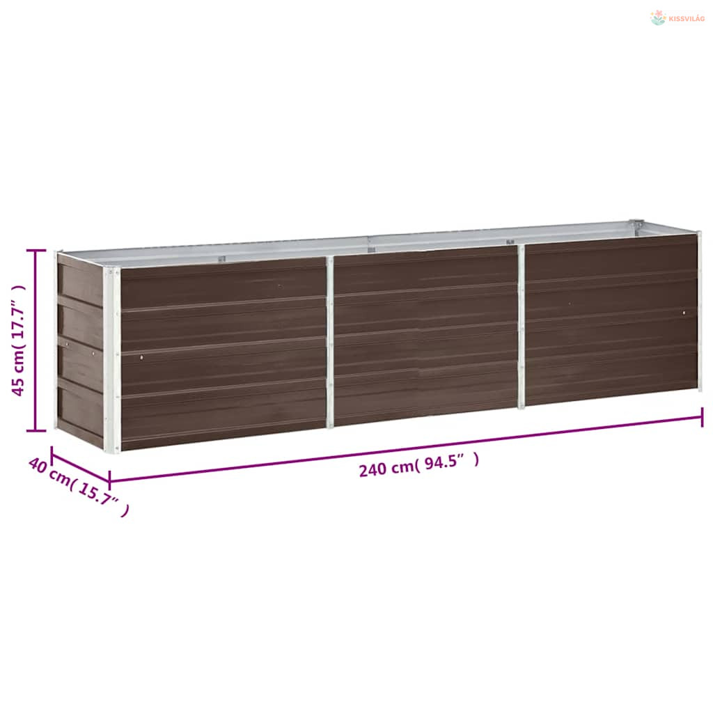 Barna horganyzott acél kerti magaságyás 240 x 40 x 45 cm