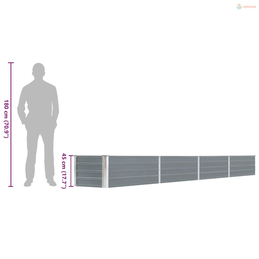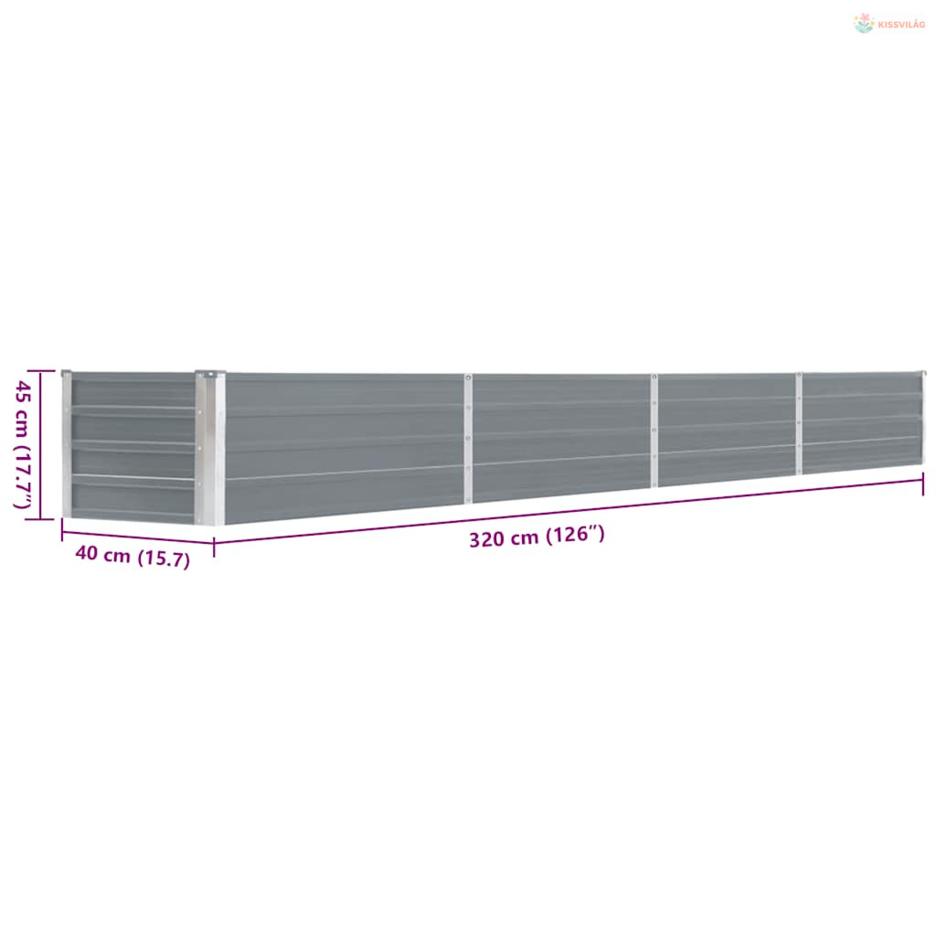 Szürke horganyzott acél kerti magaságyás 320 x 40 x 45 cm