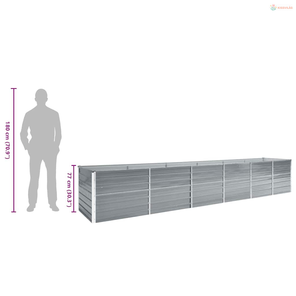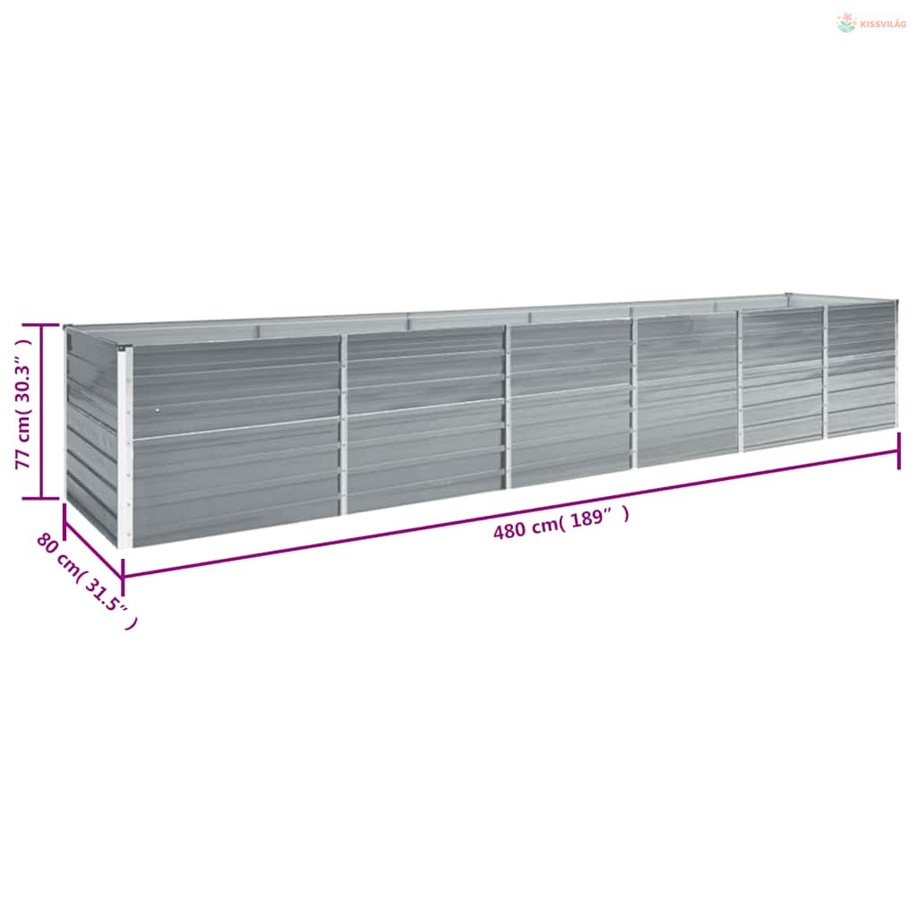 Szürke horganyzott acél kerti magaságyás 480 x 80 x 77 cm