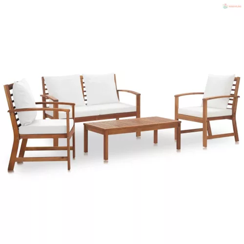 4 részes tömör akácfa kerti ülőgarnitúra párnákkal