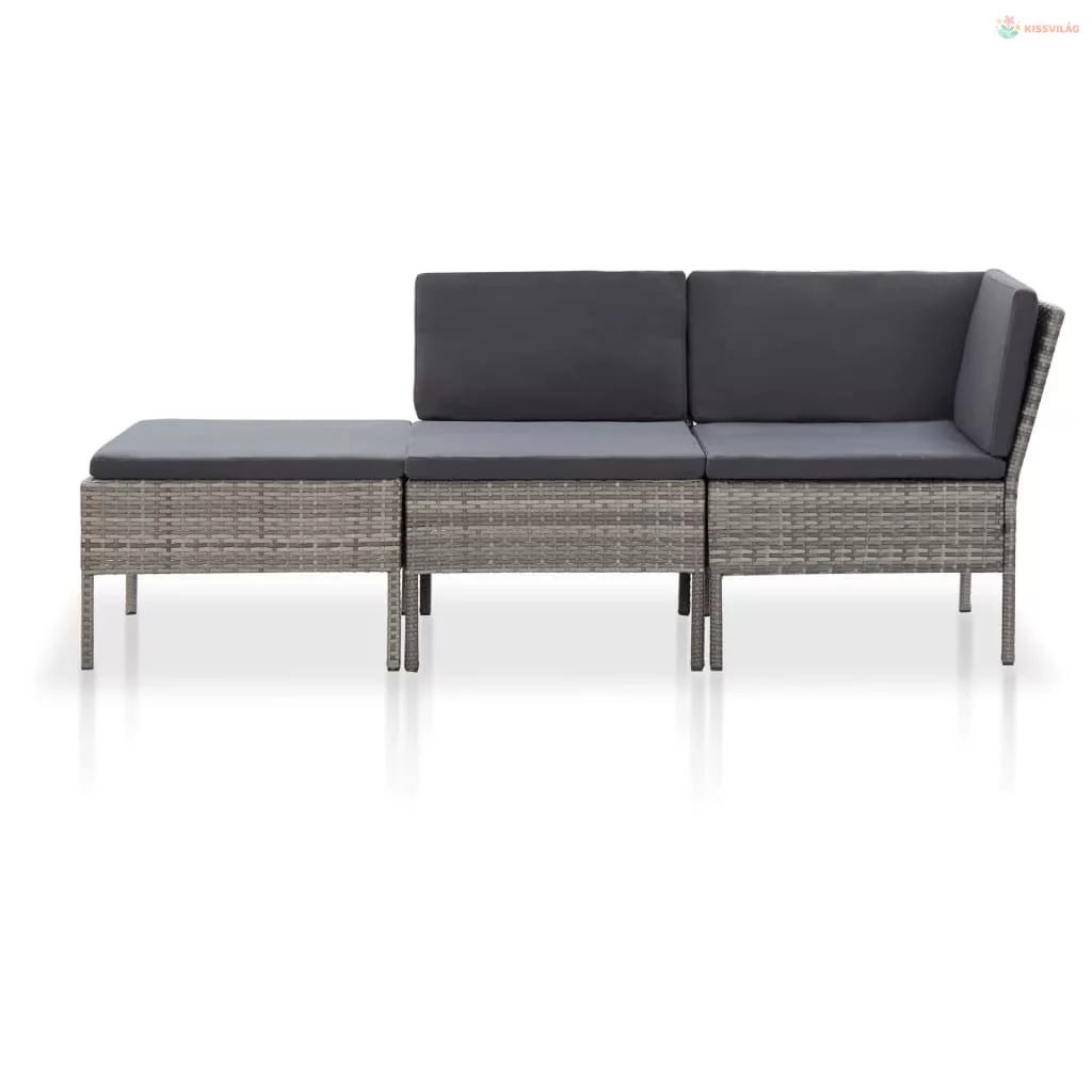 3-részes szürke polyrattan kerti ülőgarnitúra párnákkal
