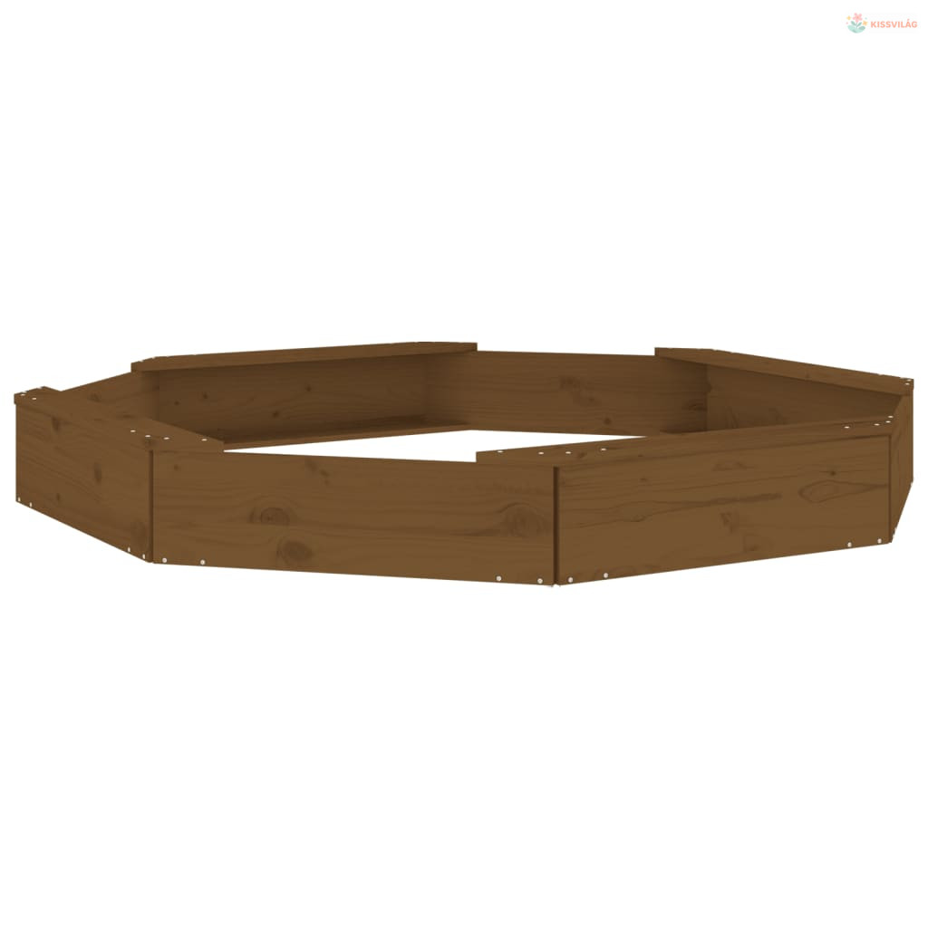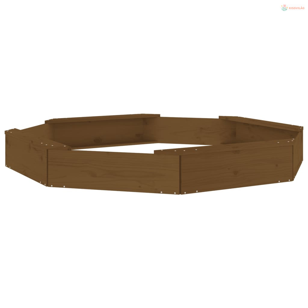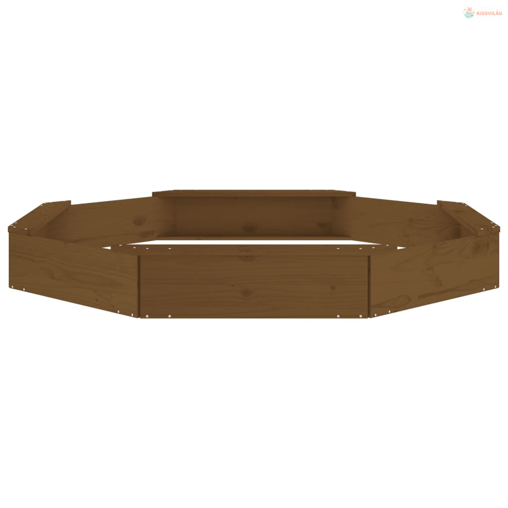 Mézbarna nyolcszög alakú tömör fenyőfa homokozó ülésekkel