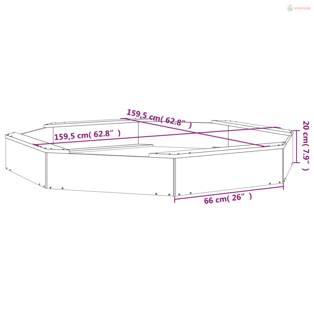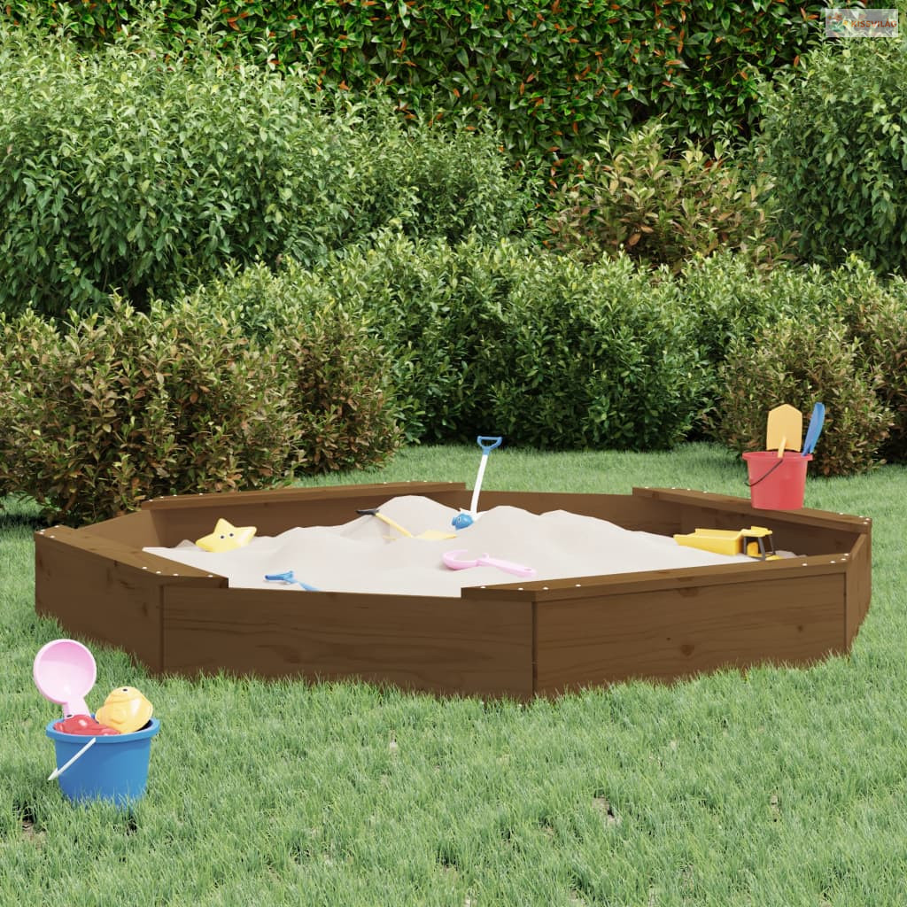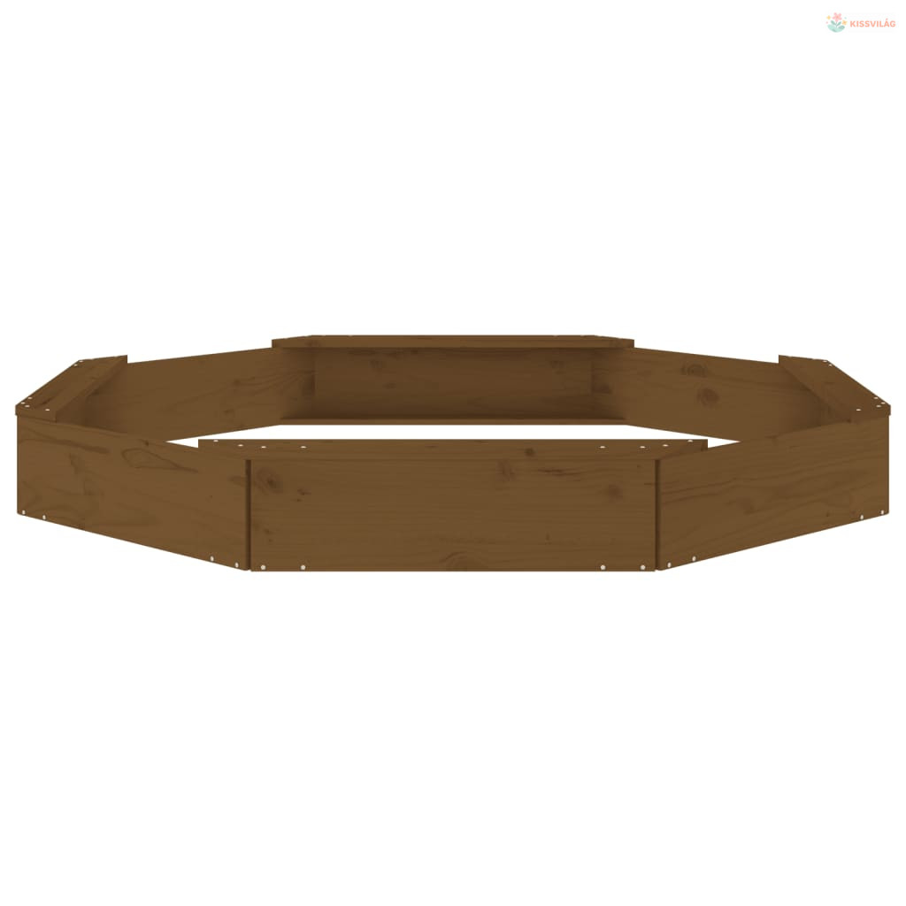 Mézbarna nyolcszög alakú tömör fenyőfa homokozó ülésekkel