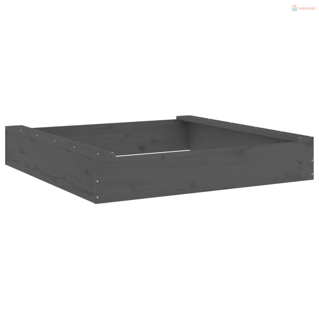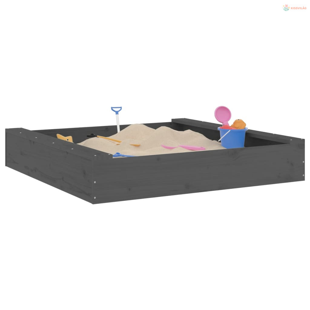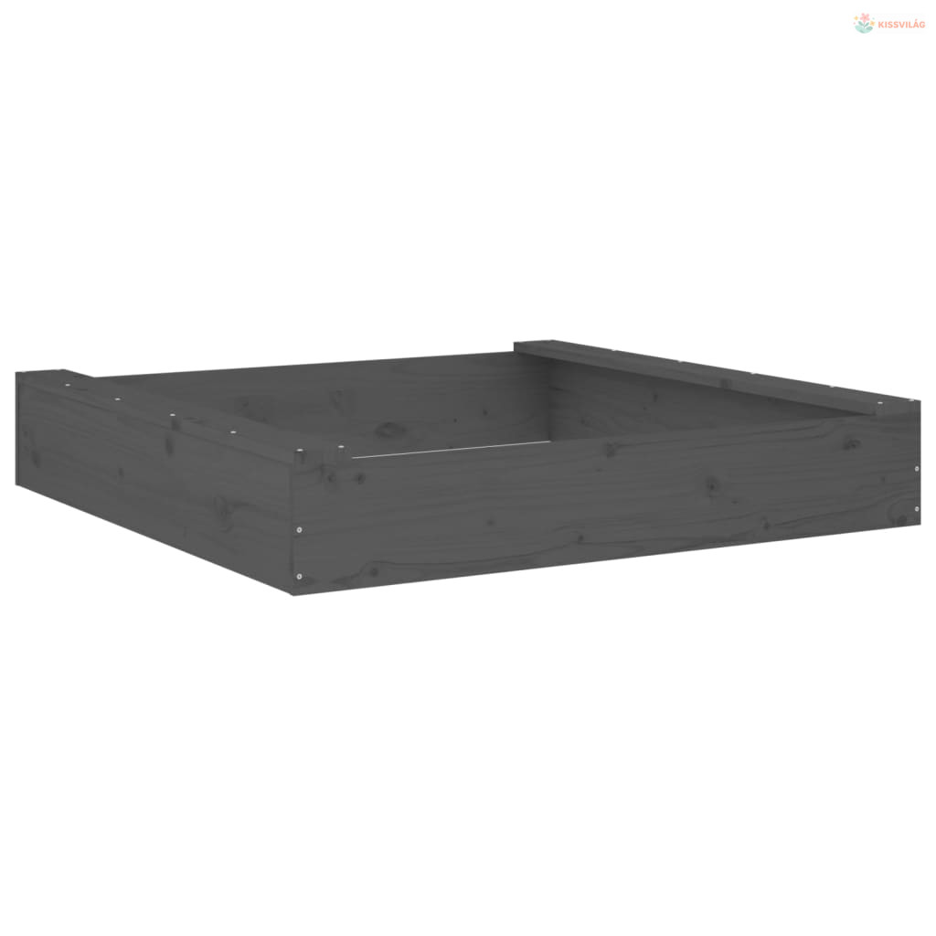 Szürke négyszög alakú tömör fenyőfa homokozó ülésekkel