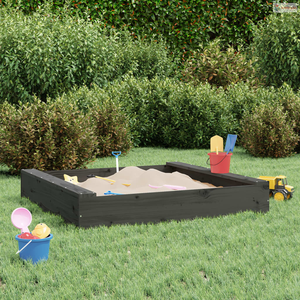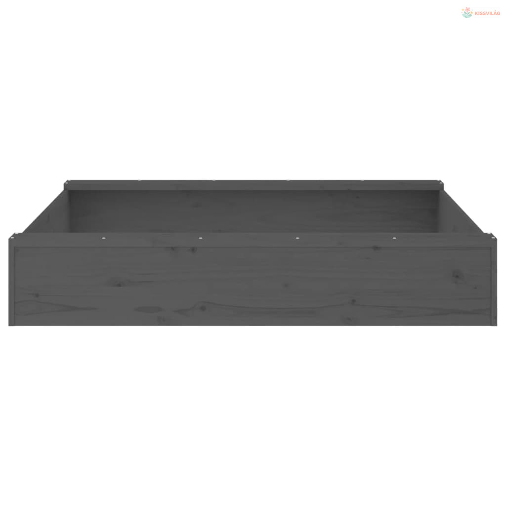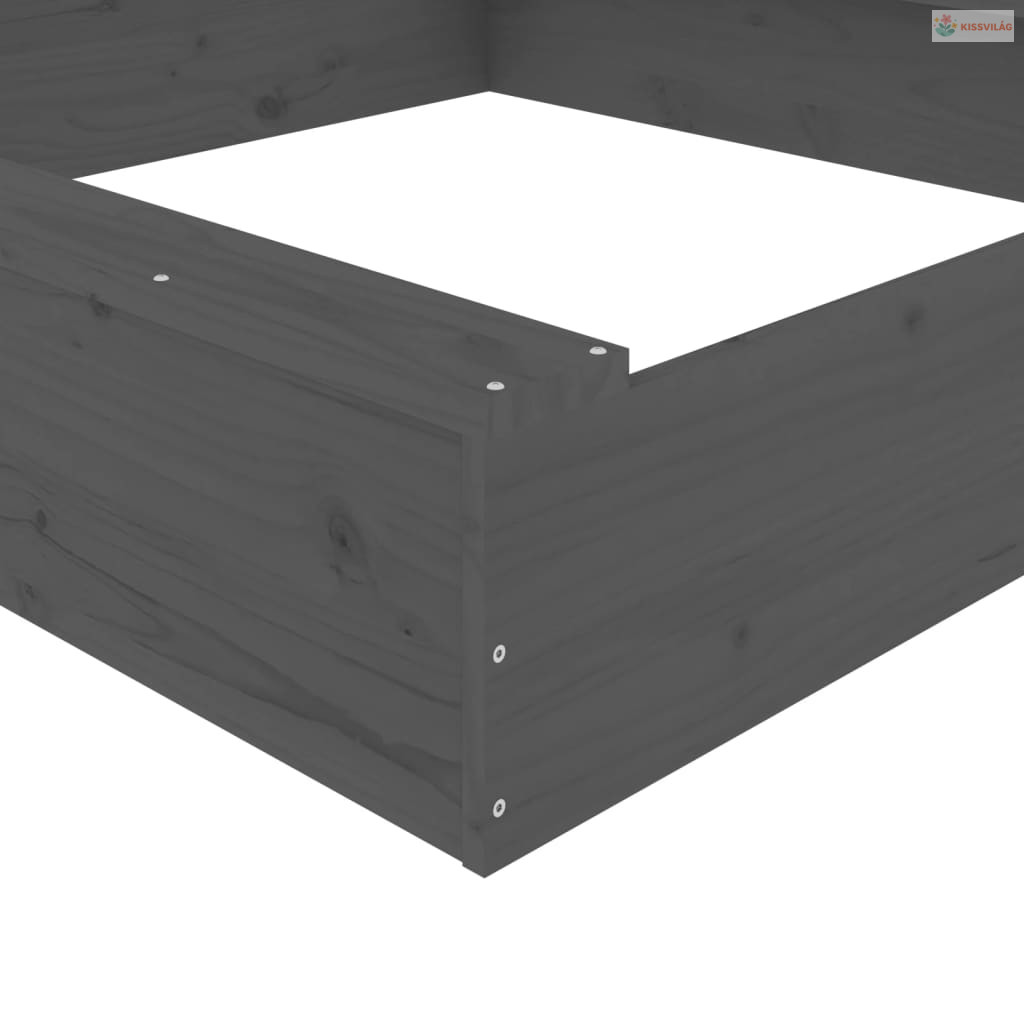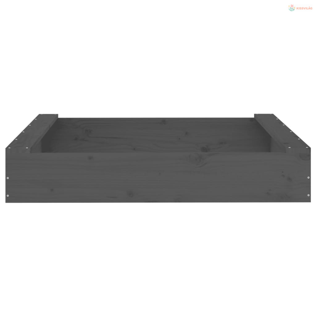 Szürke négyszög alakú tömör fenyőfa homokozó ülésekkel