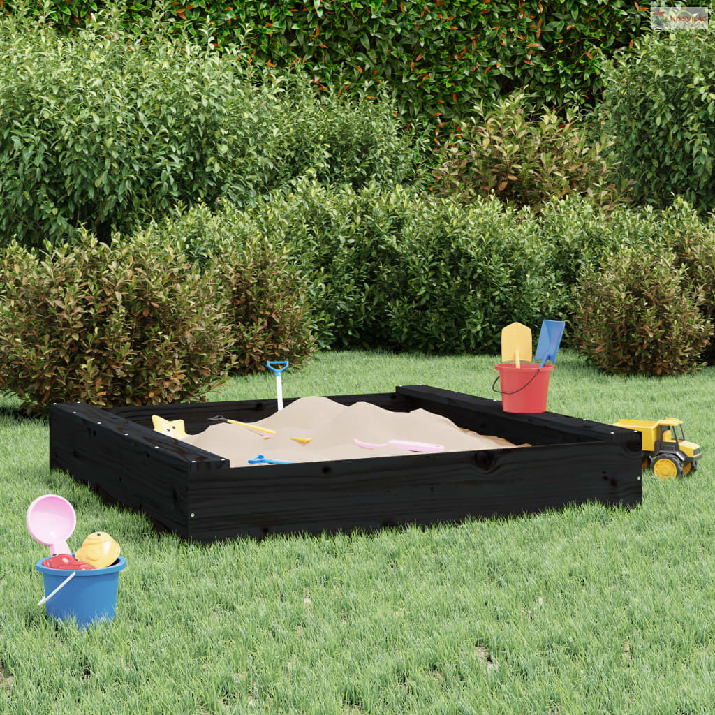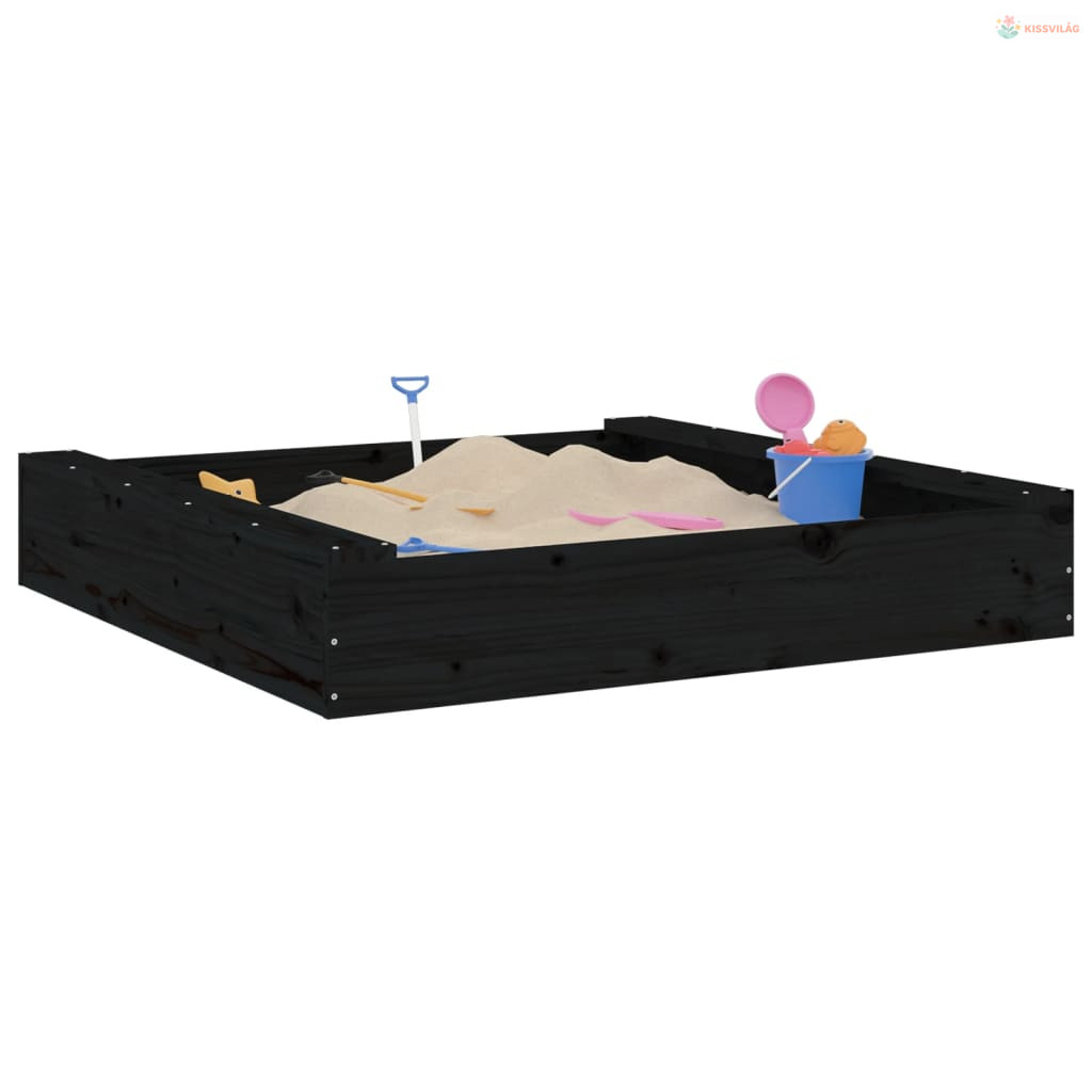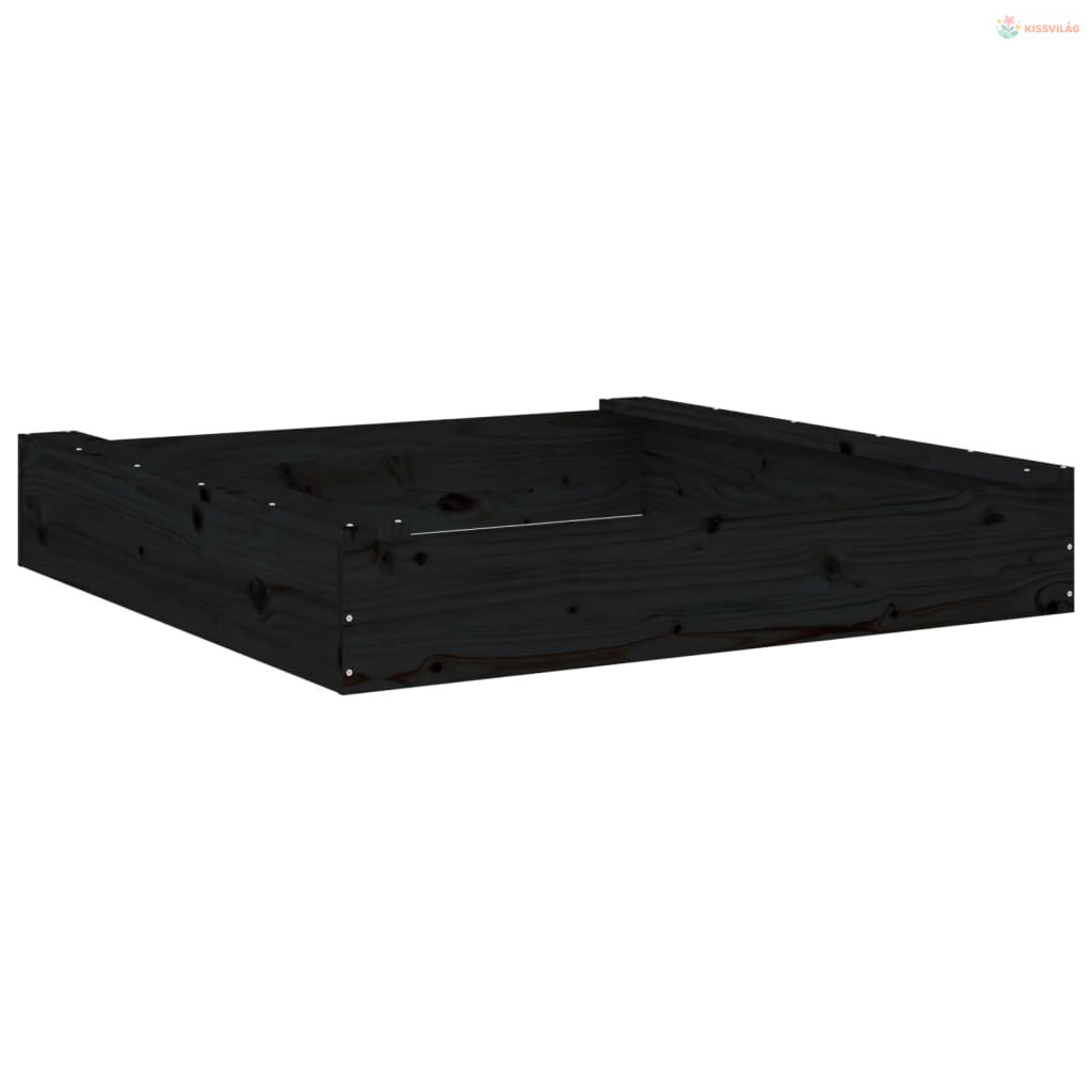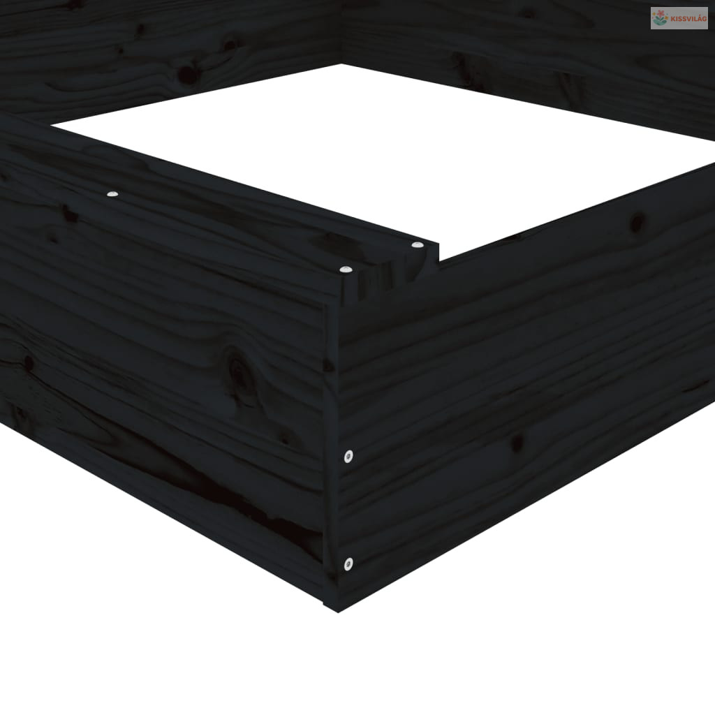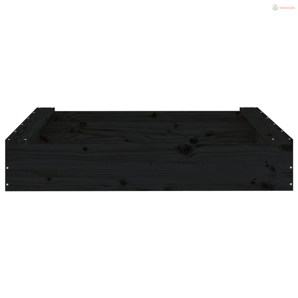 Fekete négyszögű tömör fenyőfa homokozó ülésekkel