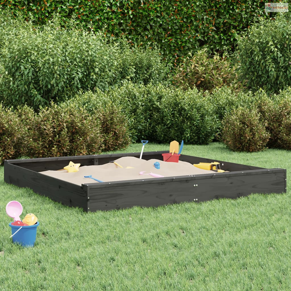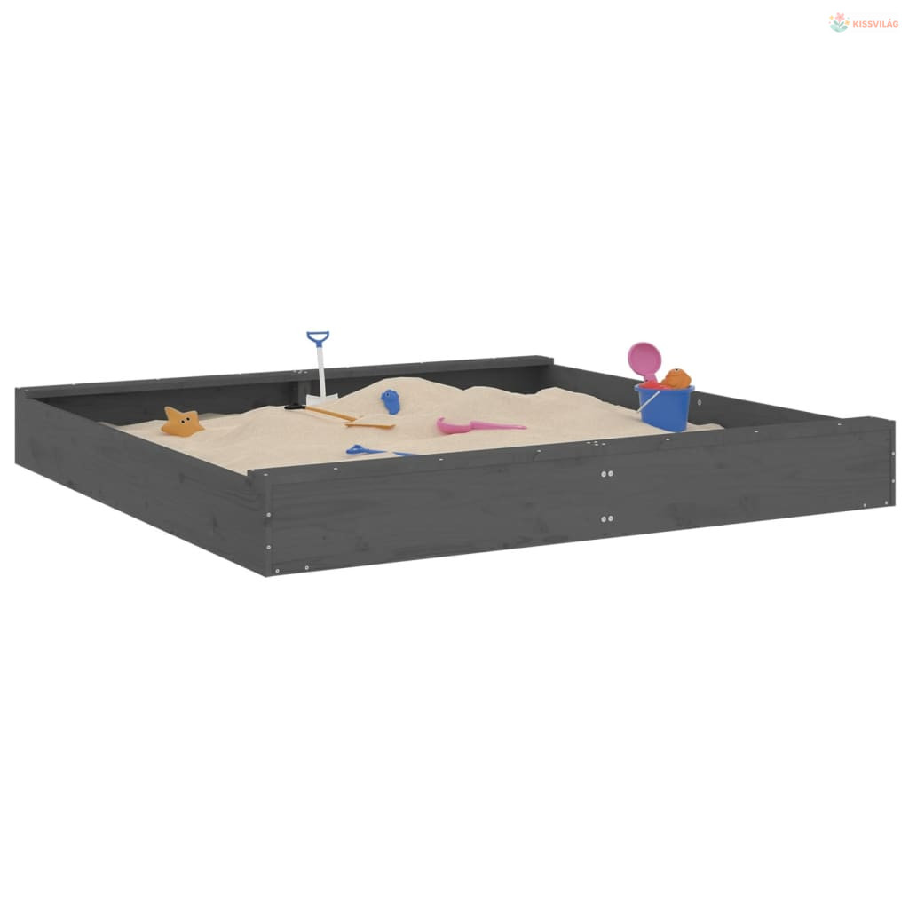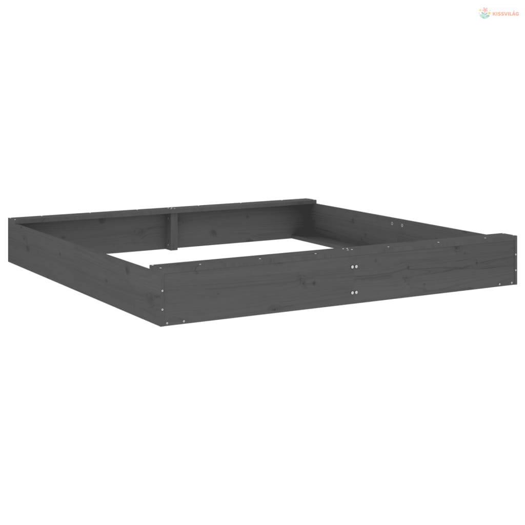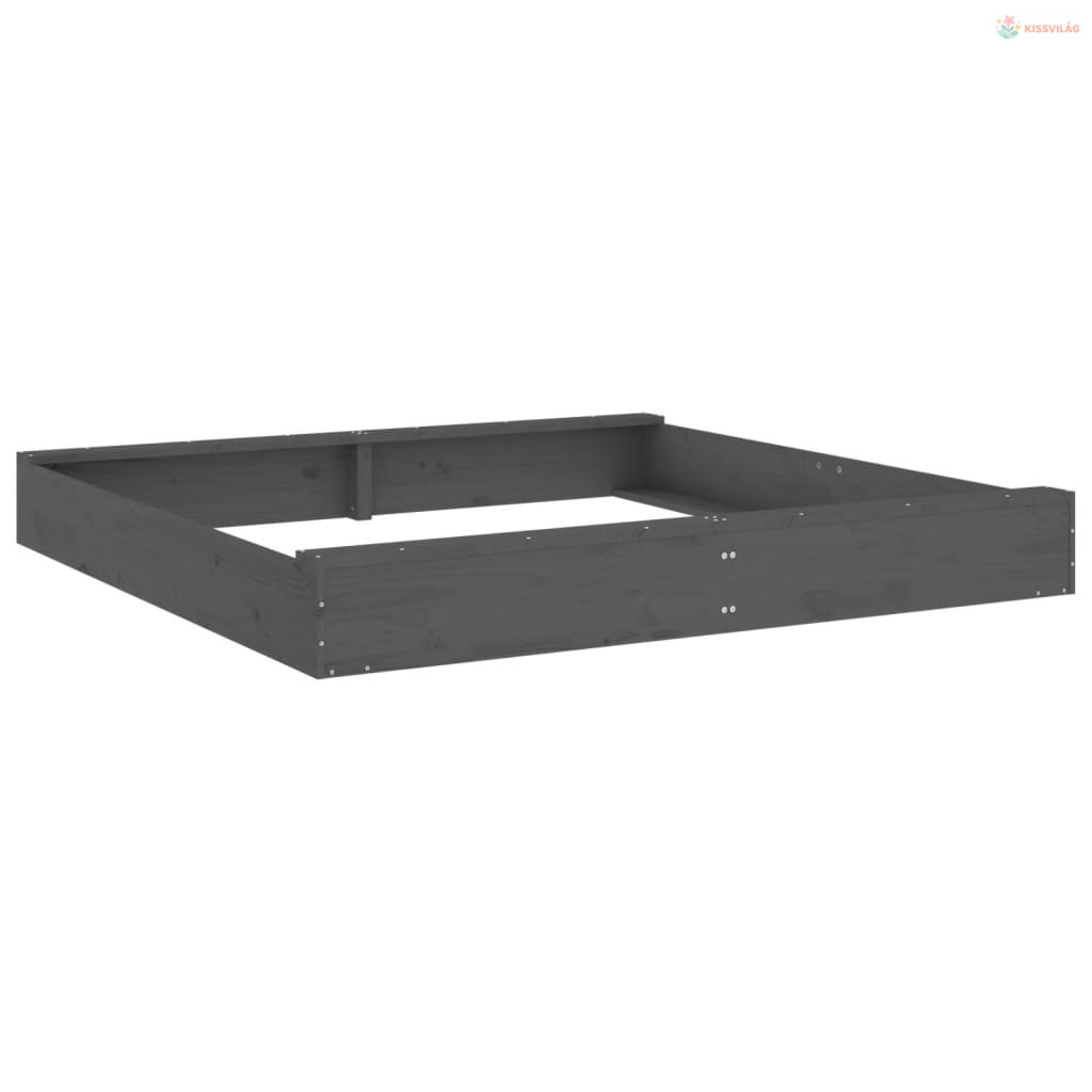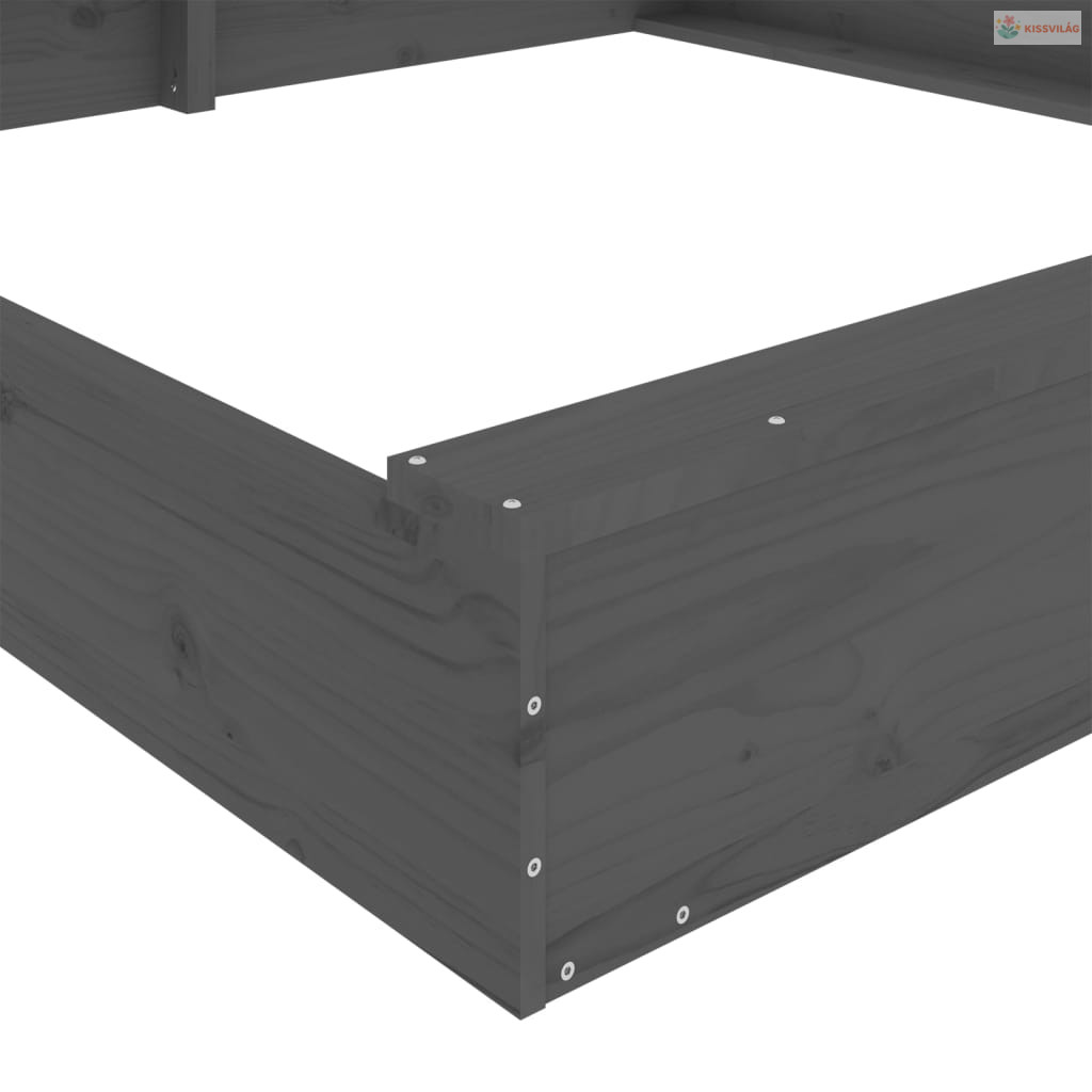 Szürke négyszög alakú tömör fenyőfa homokozó ülésekkel