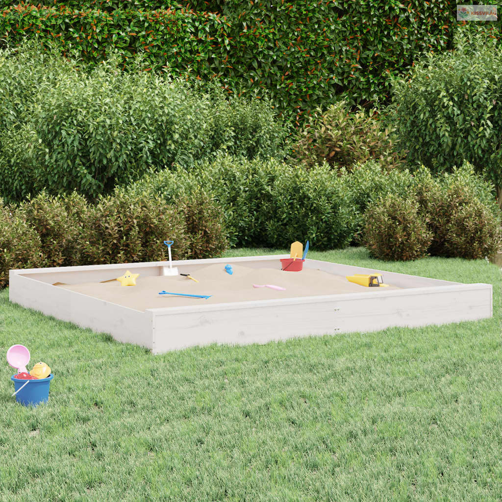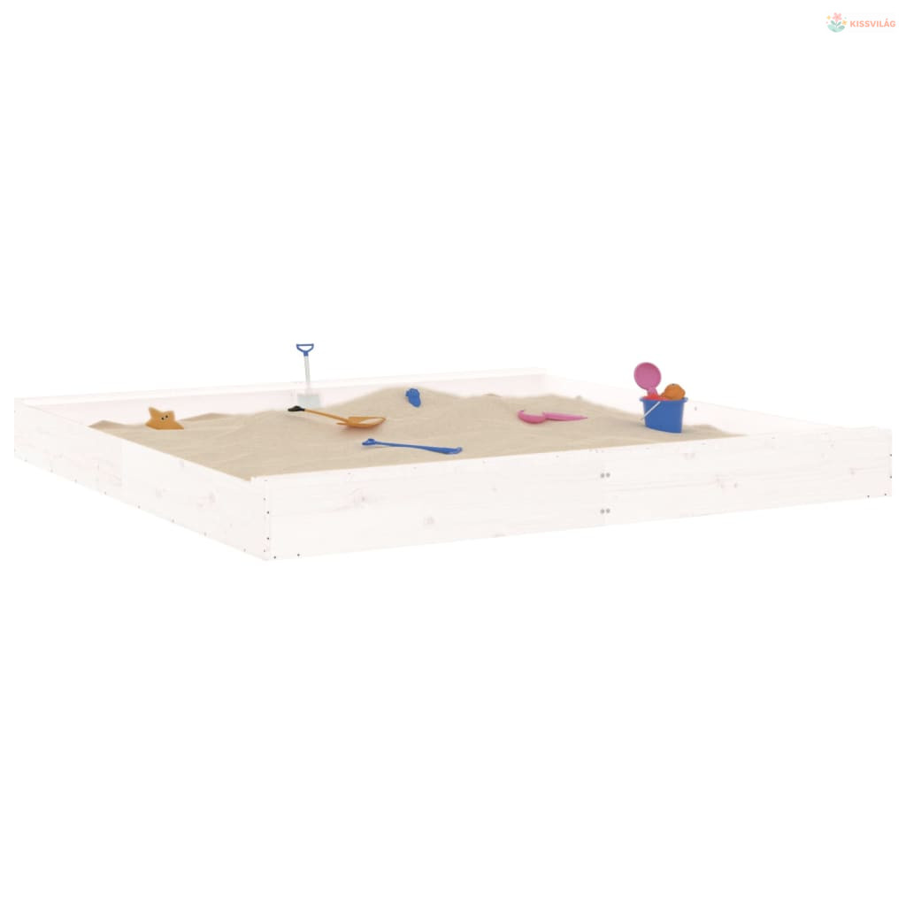 Fehér négyszög alakú tömör fenyőfa homokozó ülésekkel