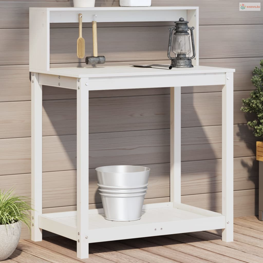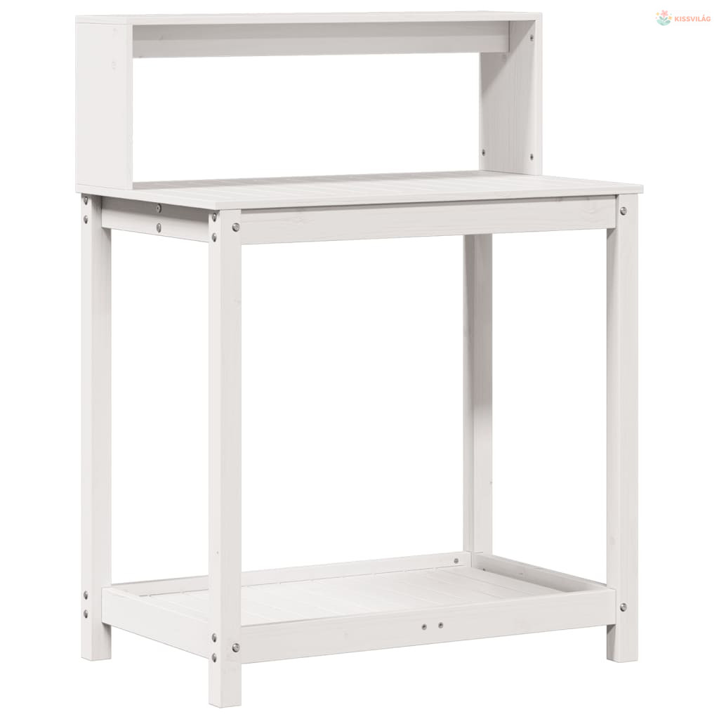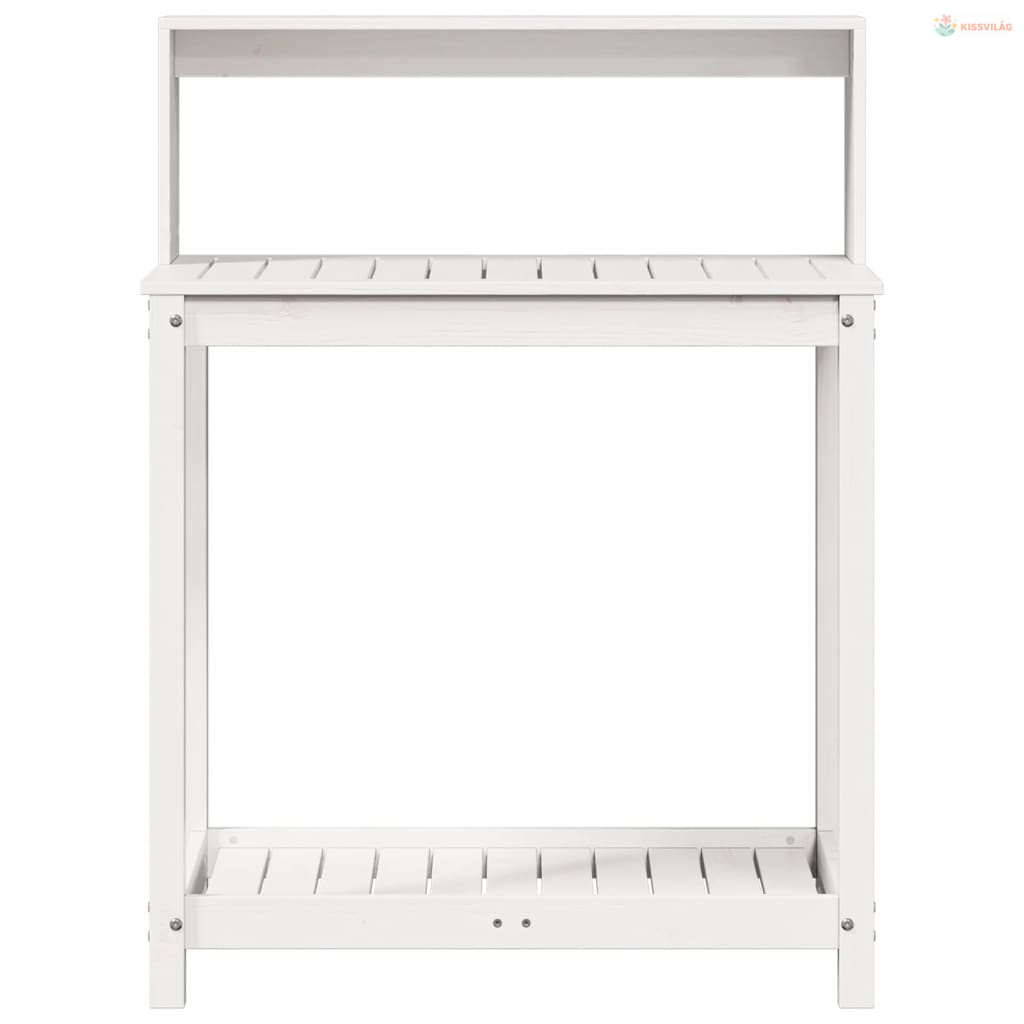 Fehér tömör fenyőfa ültetőasztal polccal 82,5 x 50 x 109,5 cm