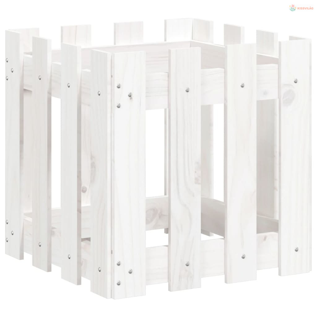 Fehér tömör fenyő növénytartó léces kialakítással 40x40x40 cm