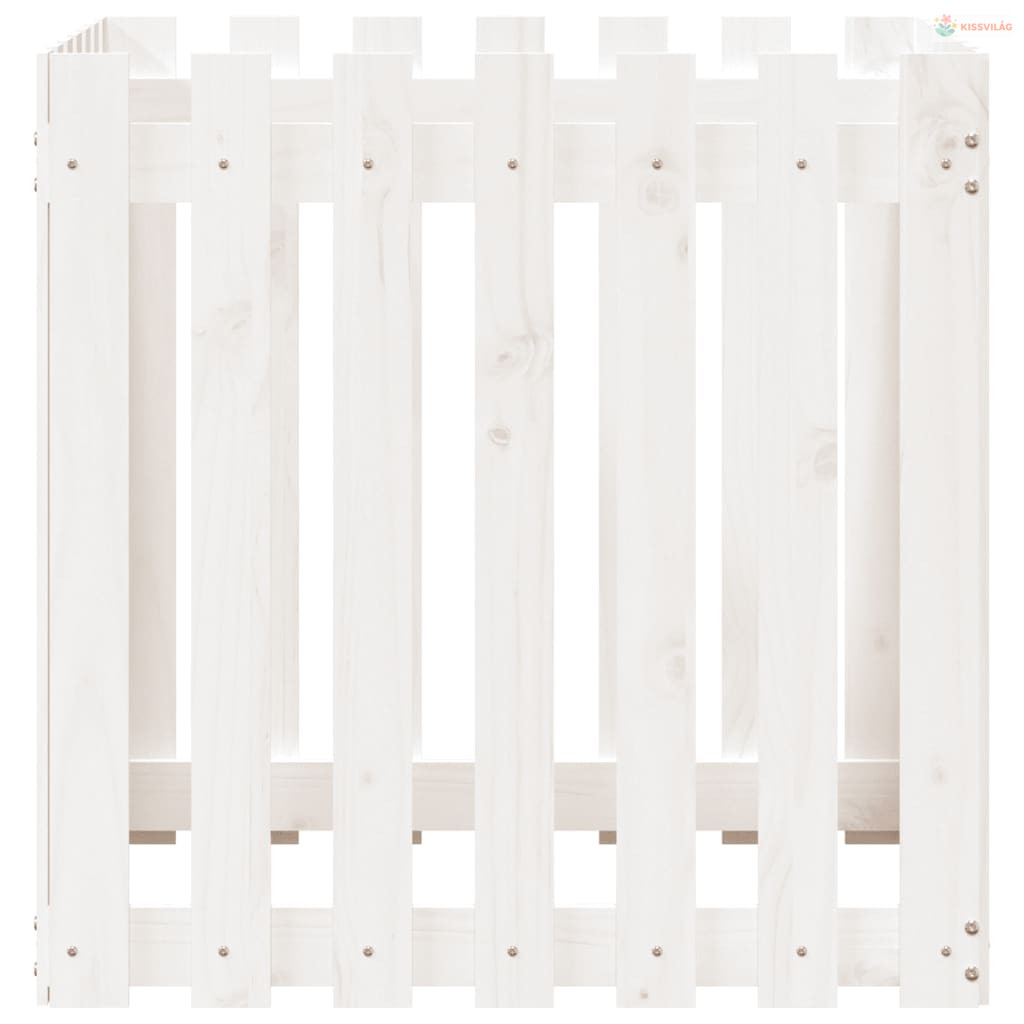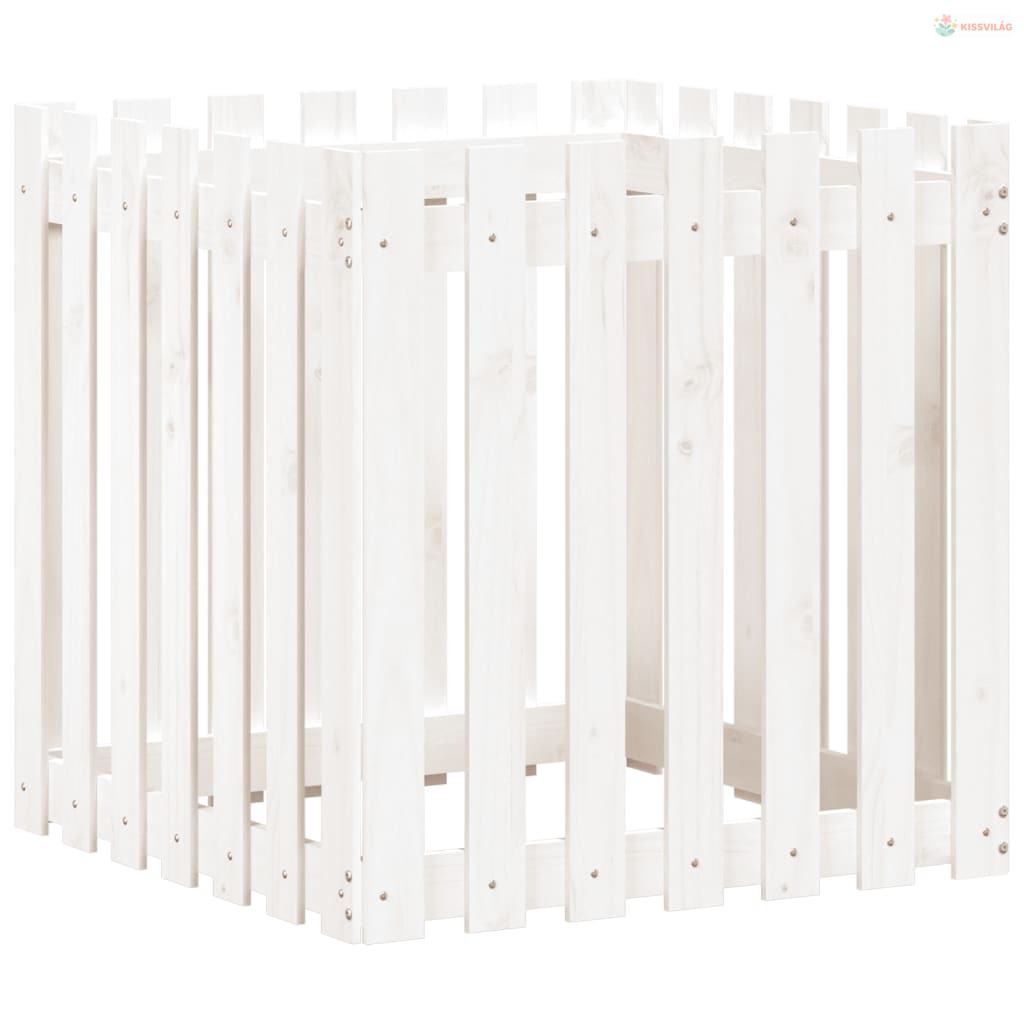 Fehér tömör fenyő növénytartó léces kialakítással 70x70x70 cm