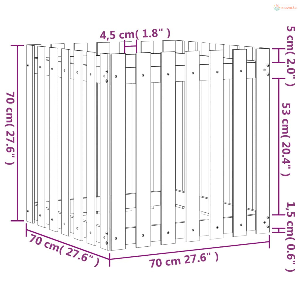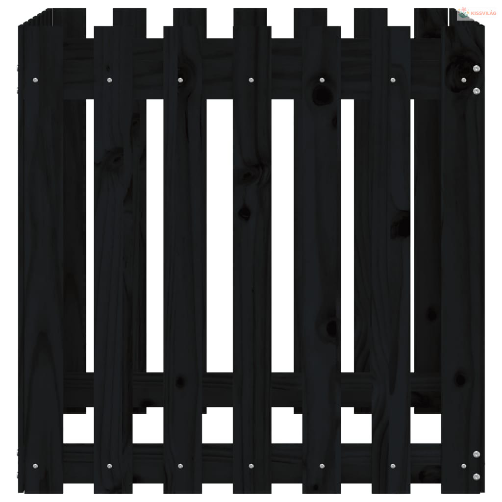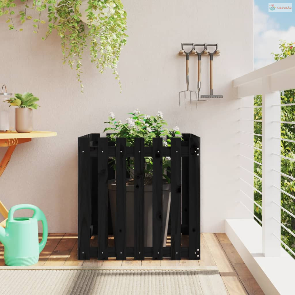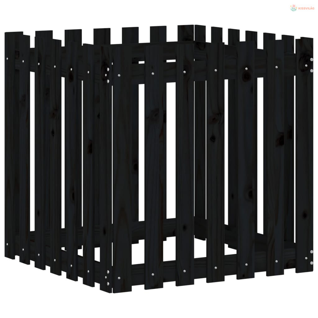 Fekete tömör fenyő növénytartó léces kialakítással 70x70x70 cm