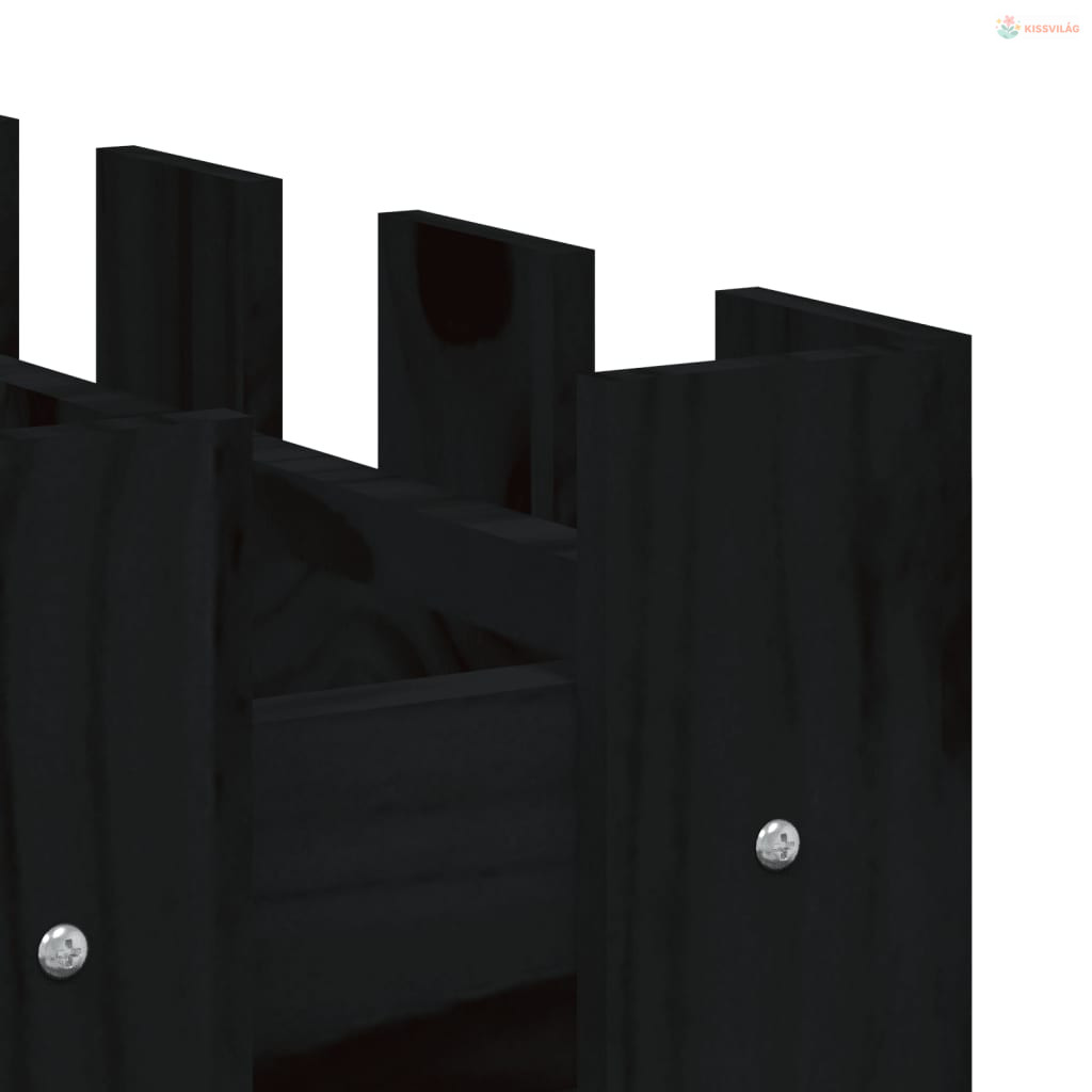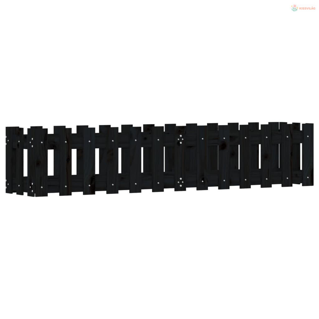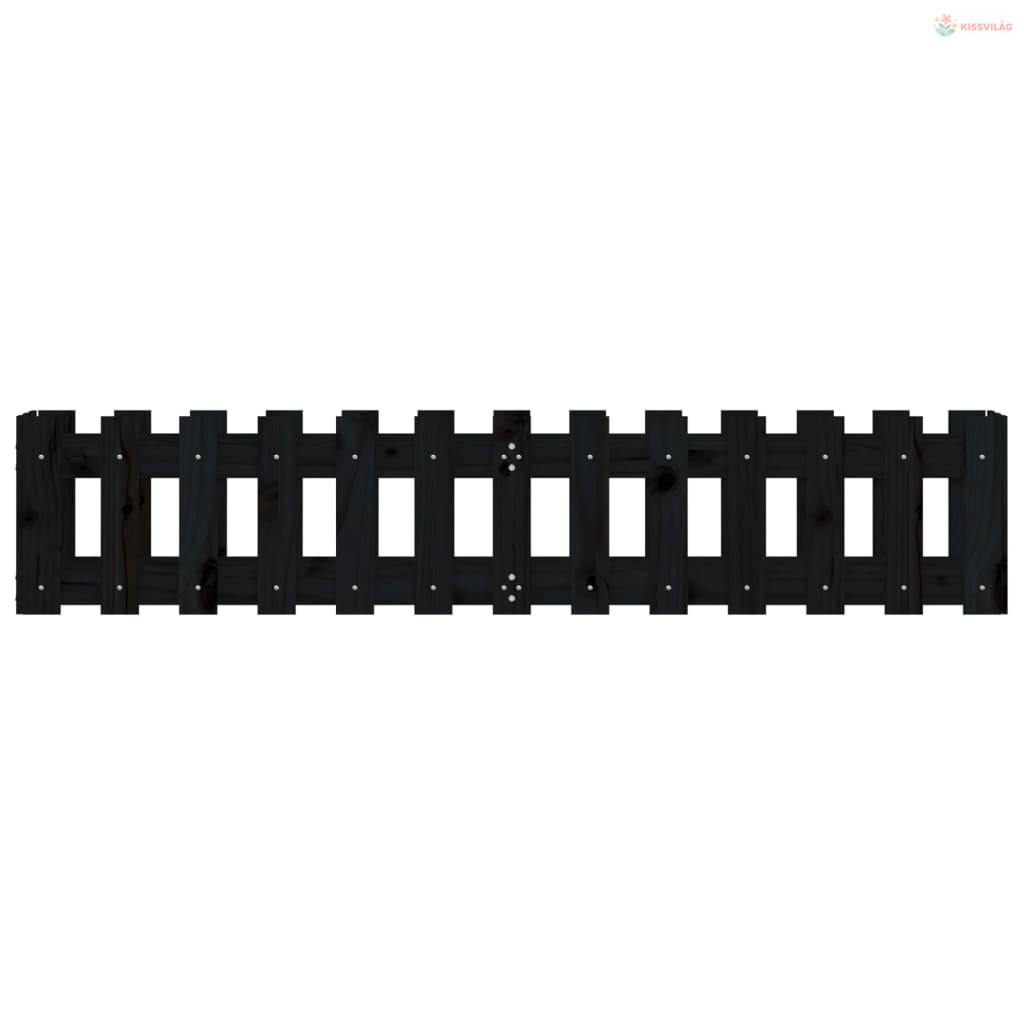 Fekete tömör fenyőfa kerti magaságyás kerítéssel 150x30x30 cm