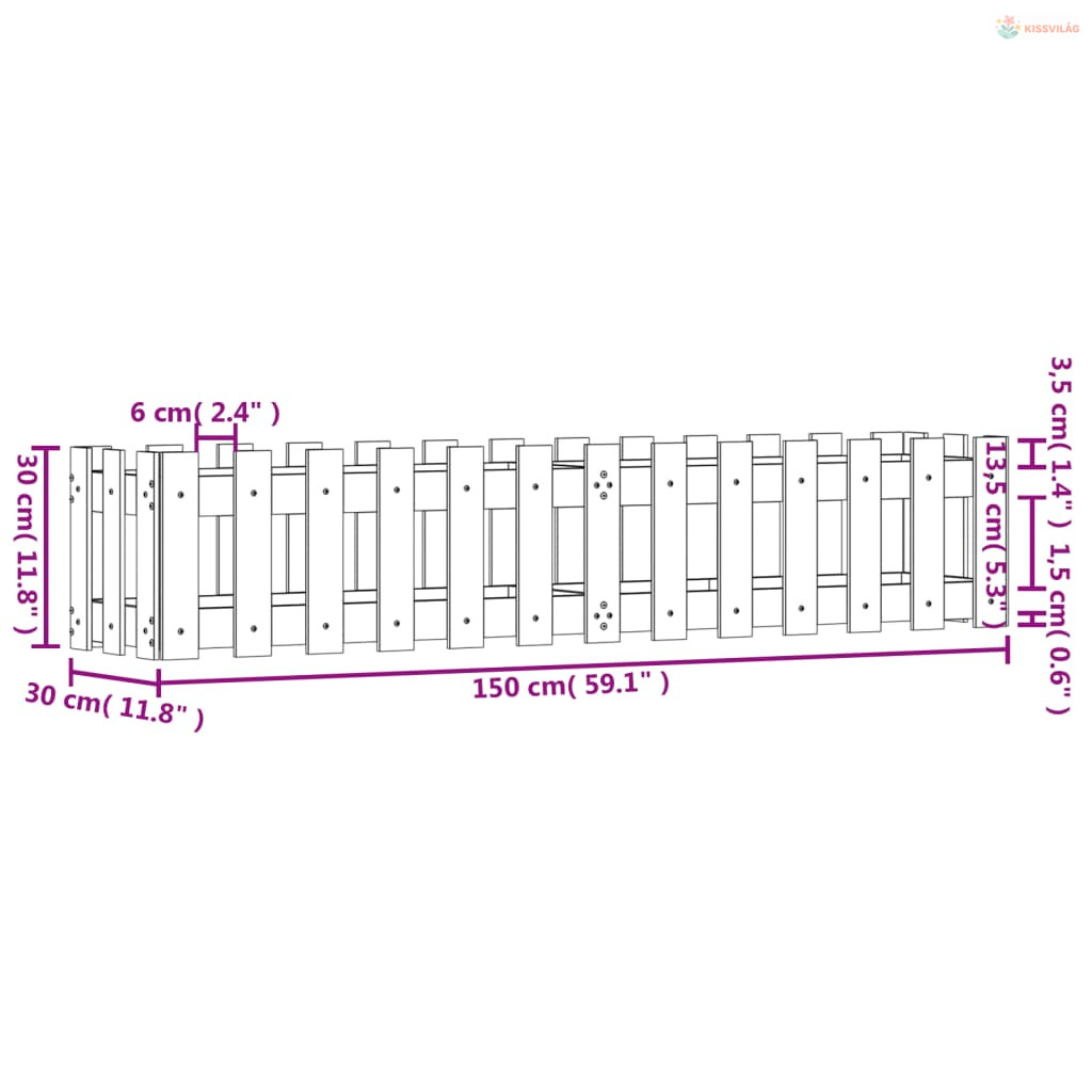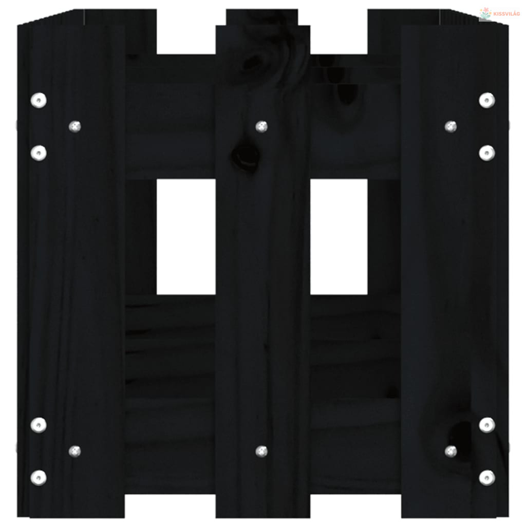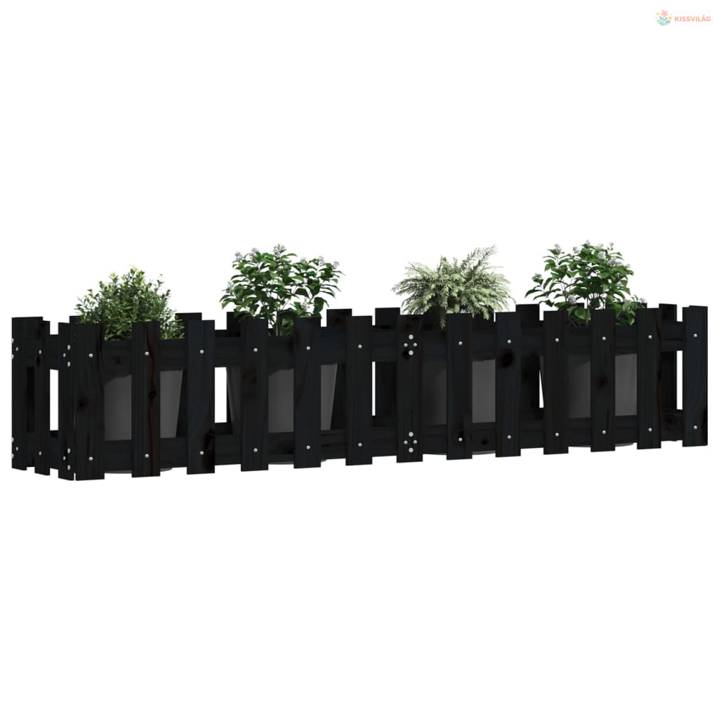Fekete tömör fenyőfa kerti magaságyás kerítéssel 150x30x30 cm