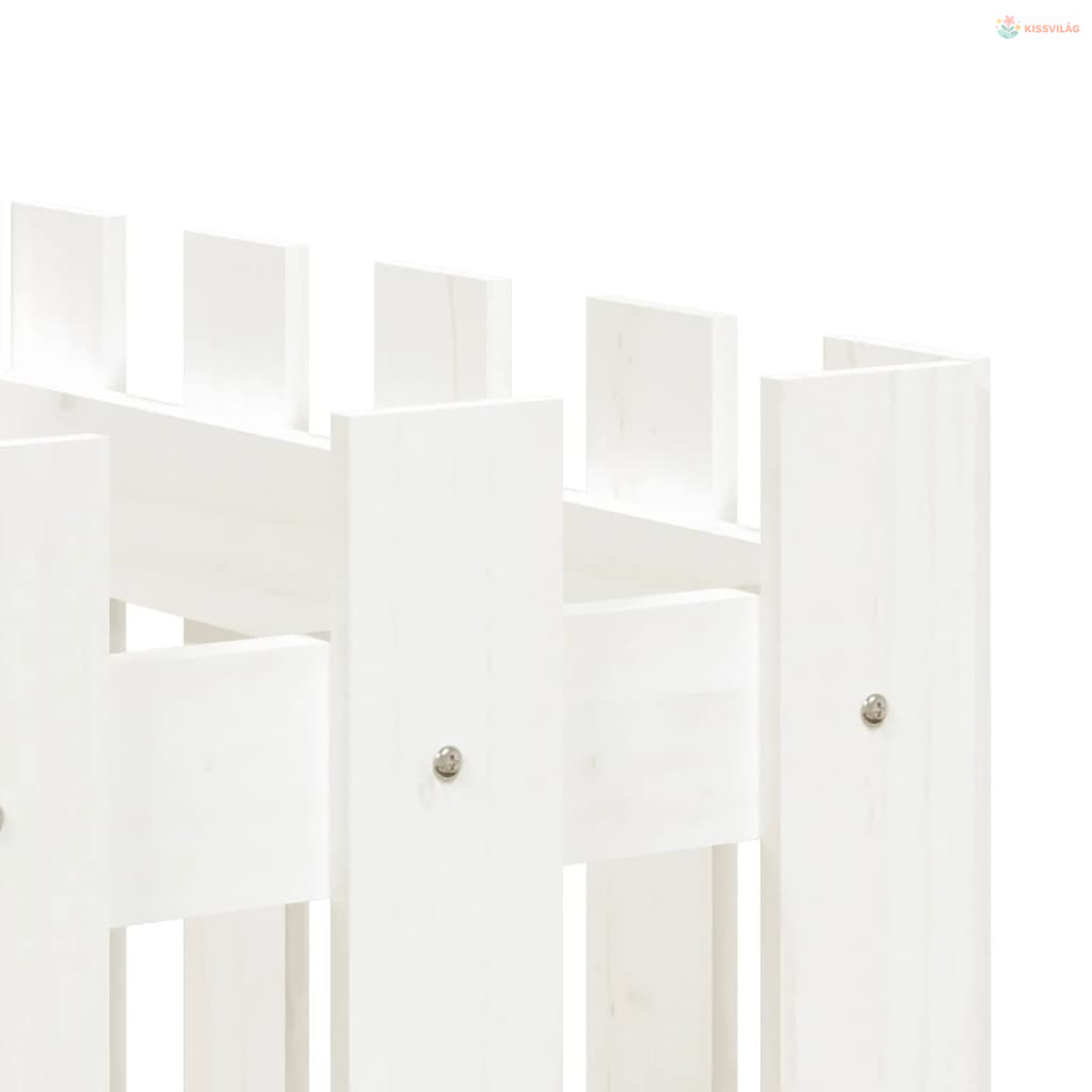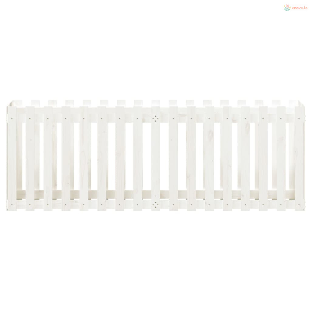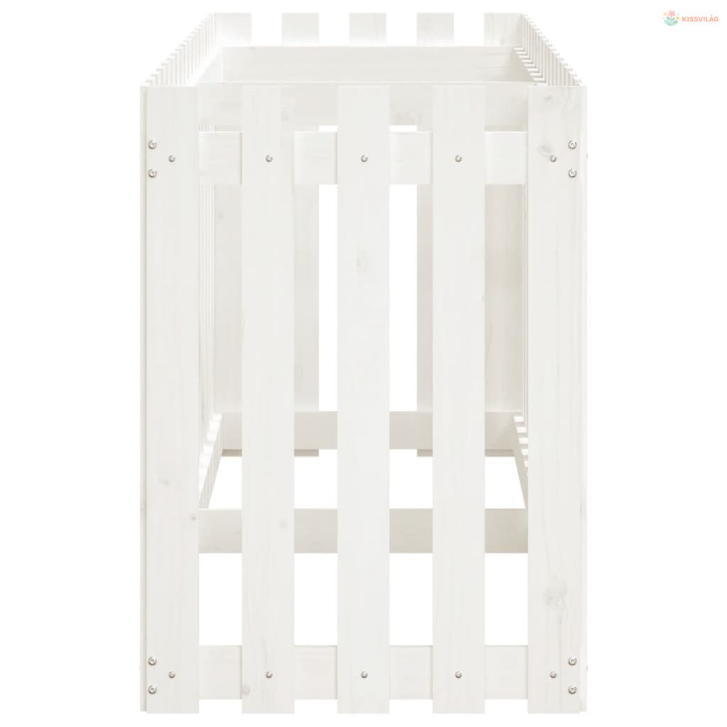 Fehér tömör fenyőfa kerti magaságyás kerítéssel 200x50x70 cm