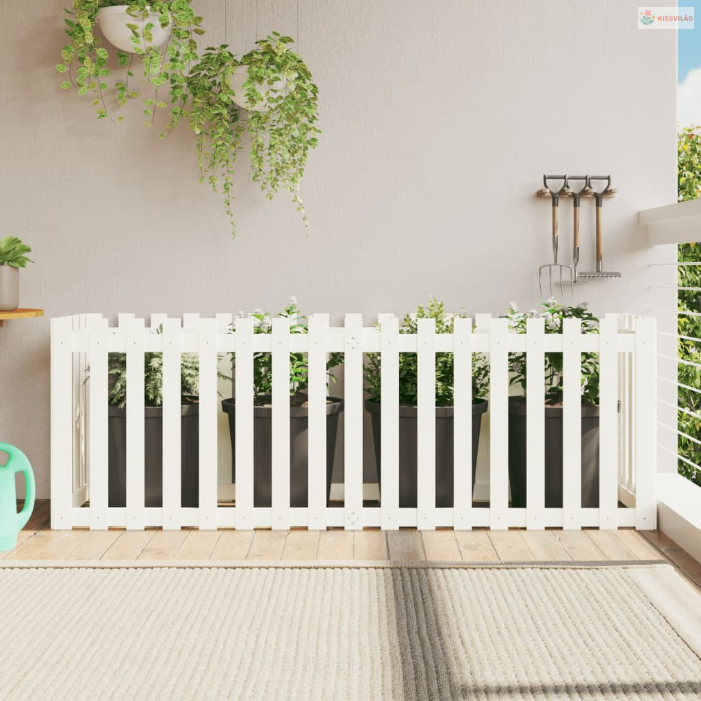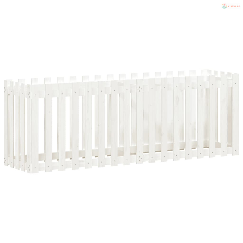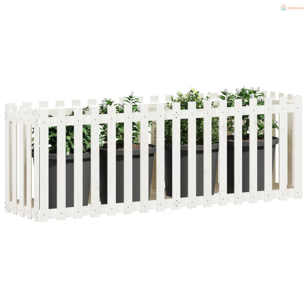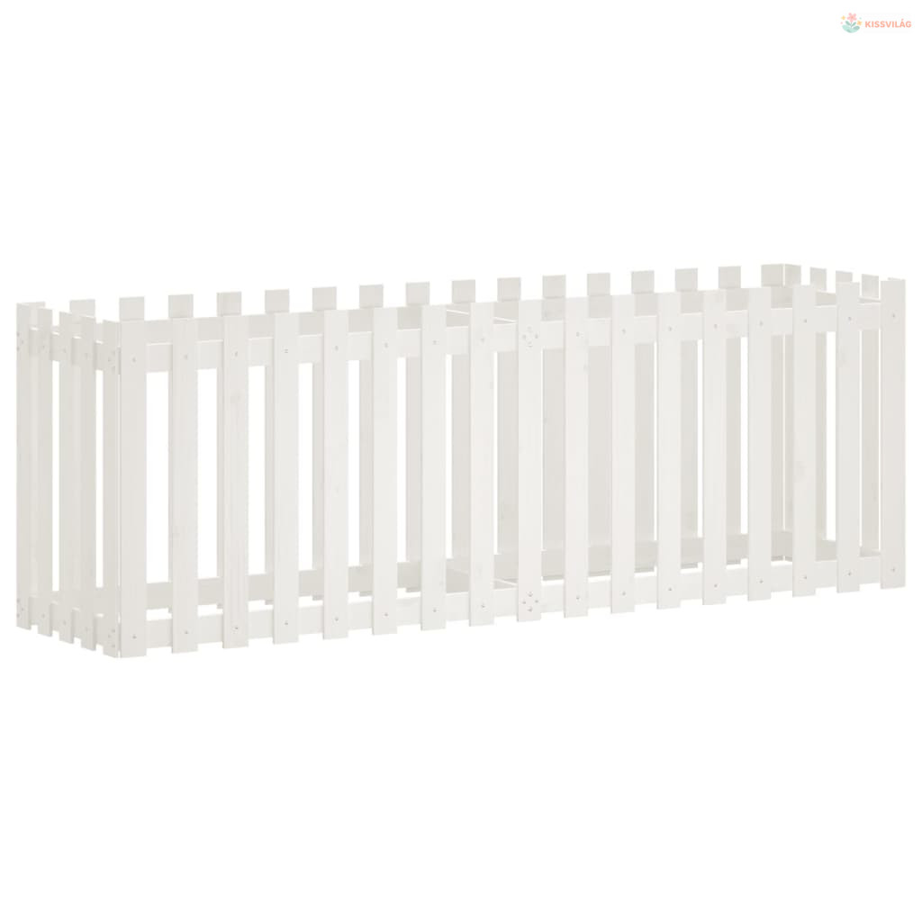 Fehér tömör fenyőfa kerti magaságyás kerítéssel 200x50x70 cm