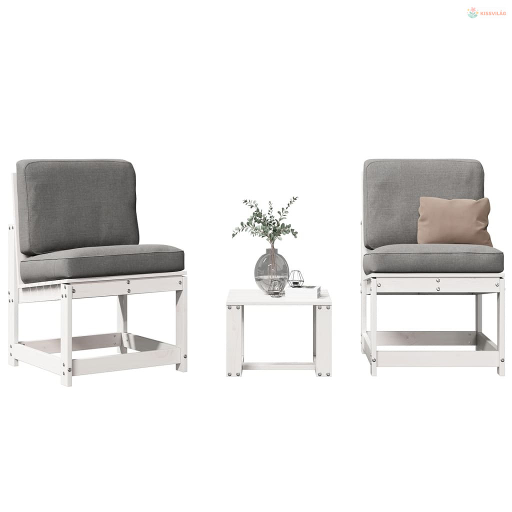 3 részes fehér tömör fenyőfa kerti ülőgarnitúra