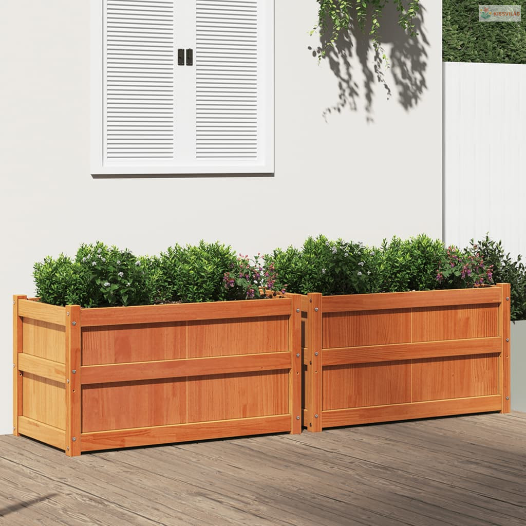 2 db viaszbarna tömör fenyőfa kerti virágláda