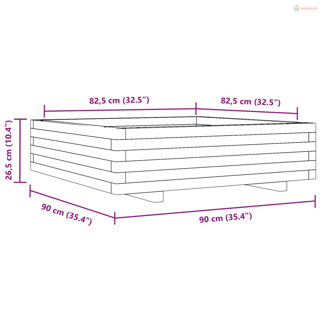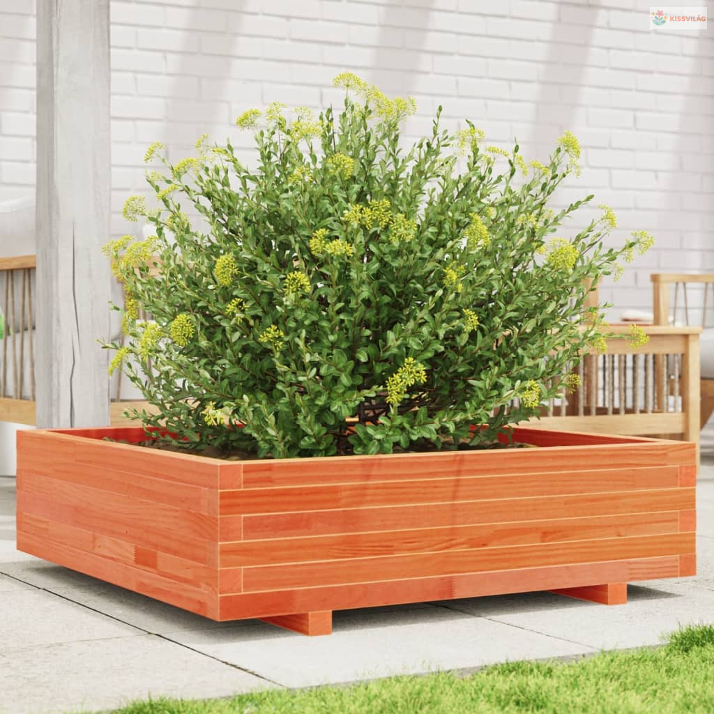 Viaszbarna tömör fenyőfa kerti virágláda 90 x 90 x 26,5 cm
