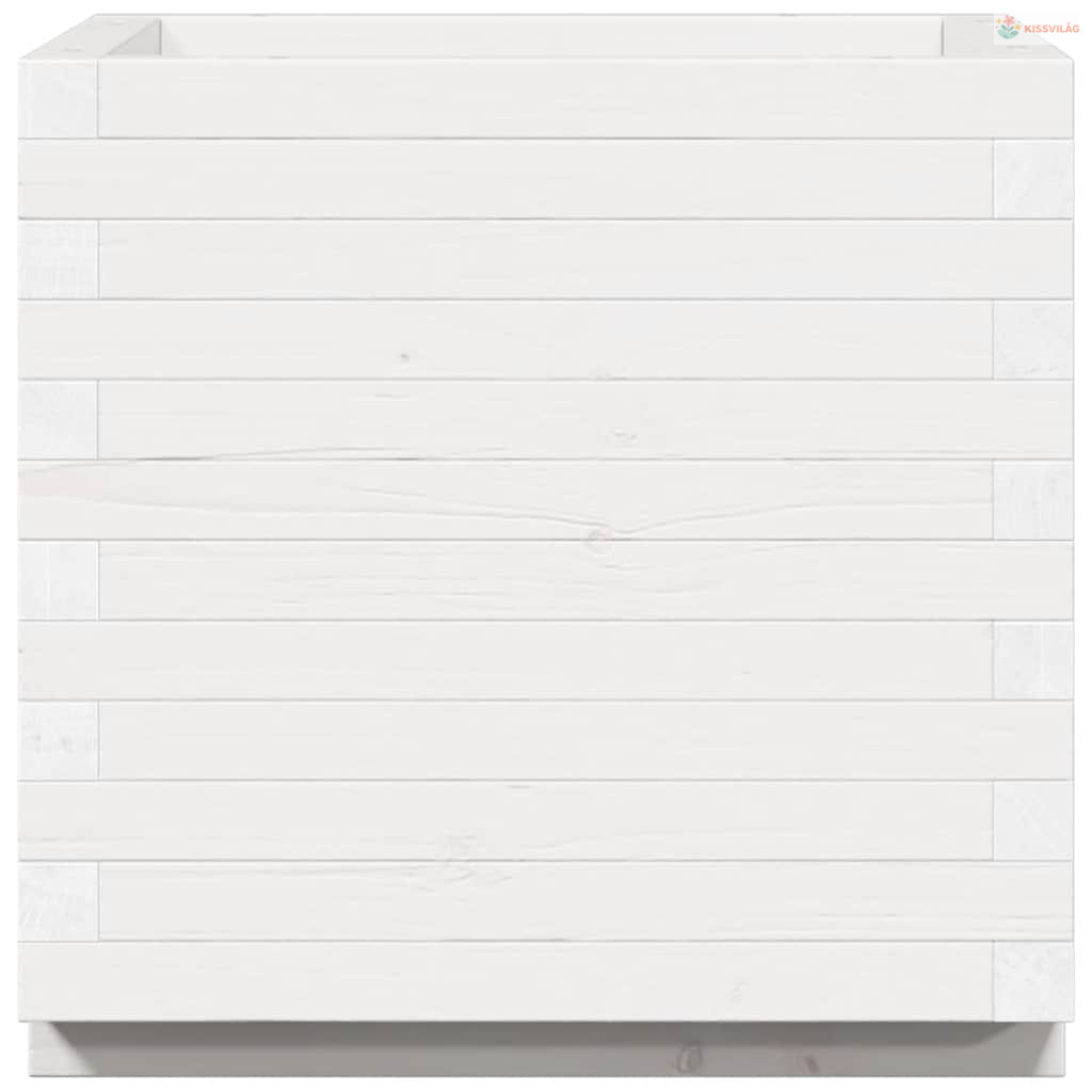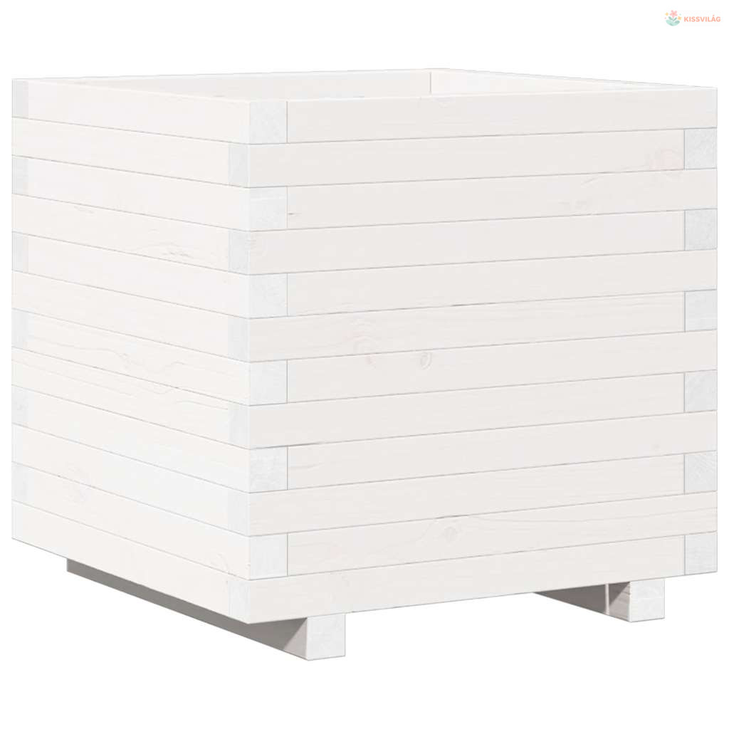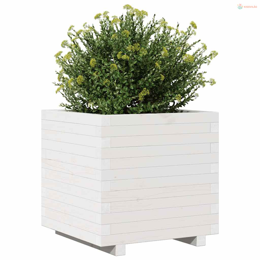 Fehér tömör fenyőfa kerti virágláda 50 x 50 x 49,5 cm