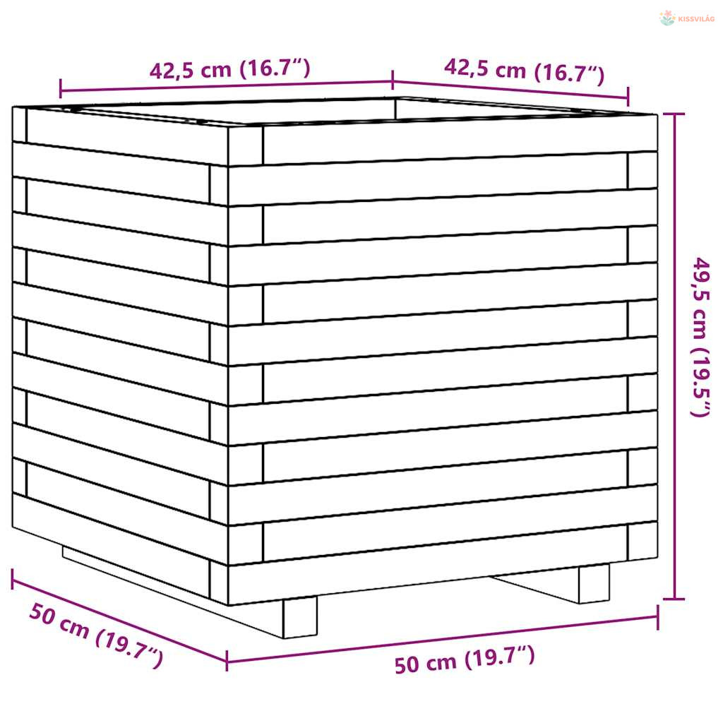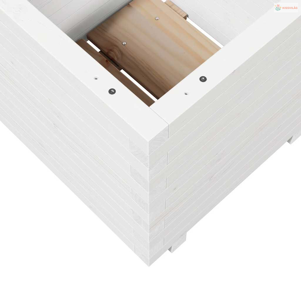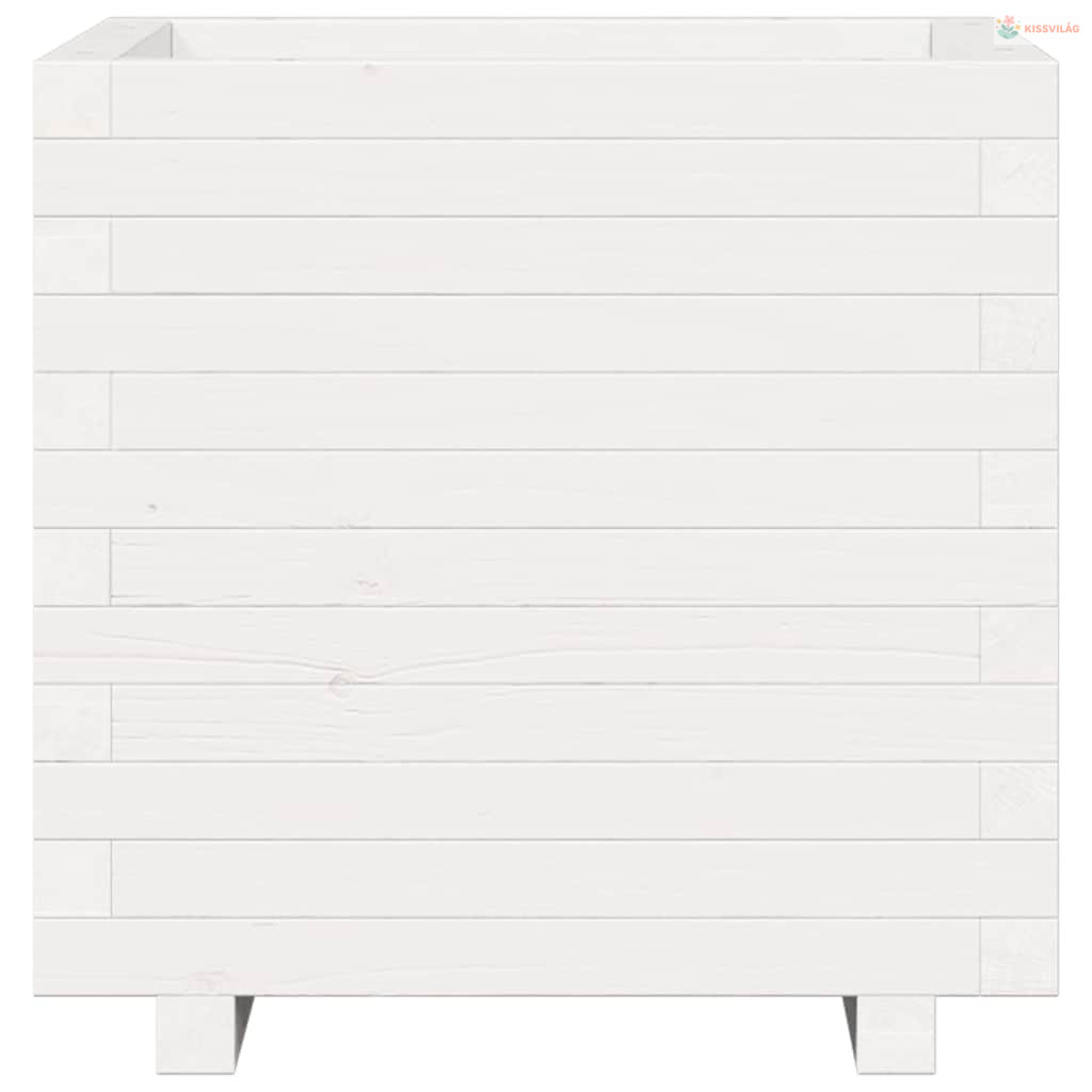 Fehér tömör fenyőfa kerti virágláda 50 x 50 x 49,5 cm