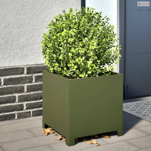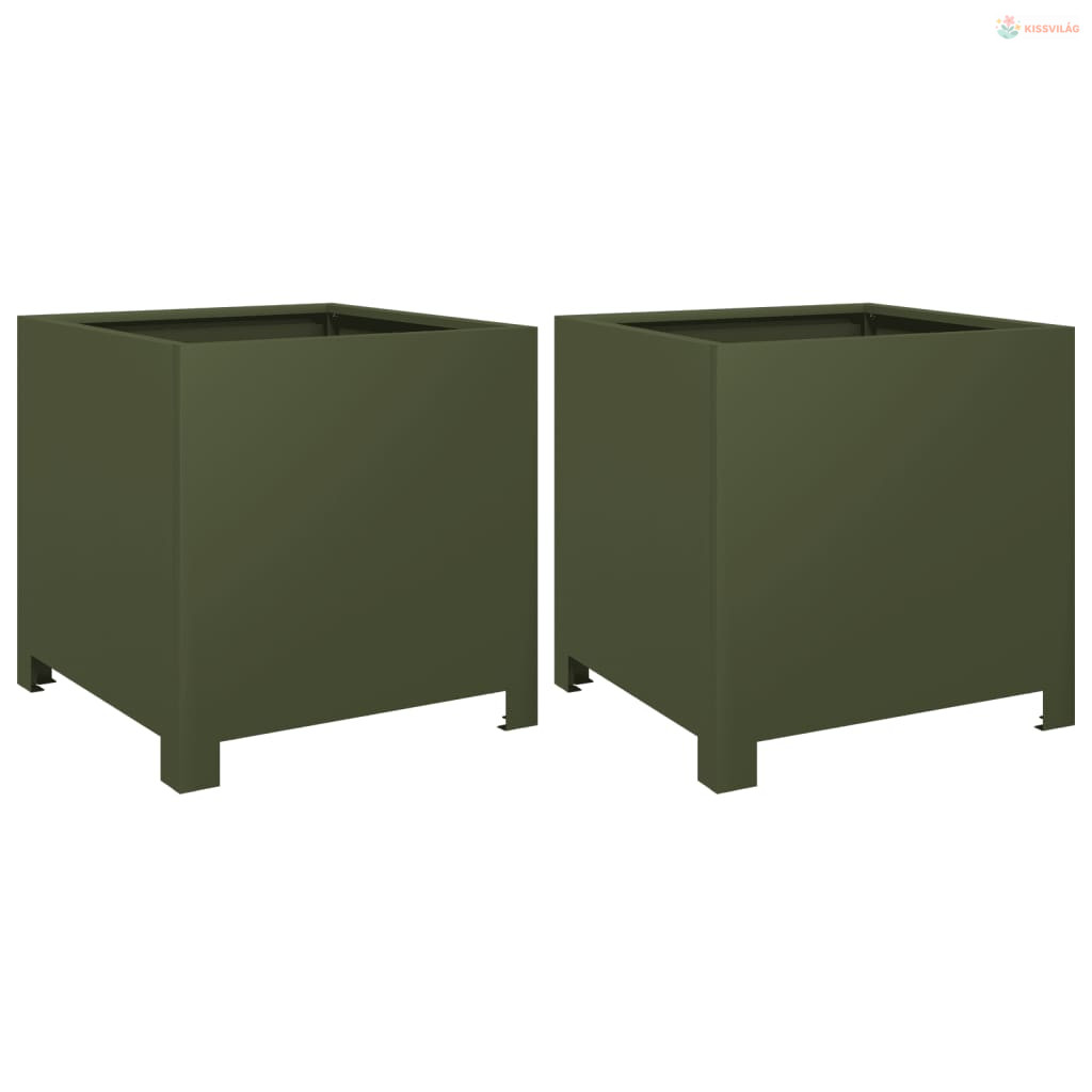2 db olívazöld acél kerti növénytartó 40 x 40 x 40 cm