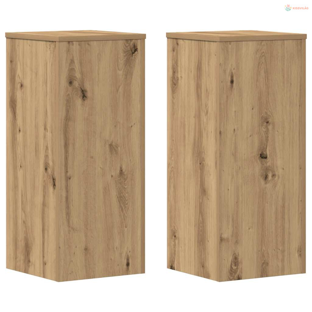 2 db kézműves tölgy szerelt fa növénytartó állvány 30x30x70 cm