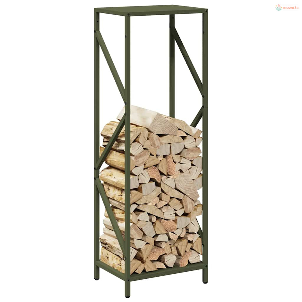 Olívazöld hidegen hengerelt acél tűzifatároló 34x25x100 cm