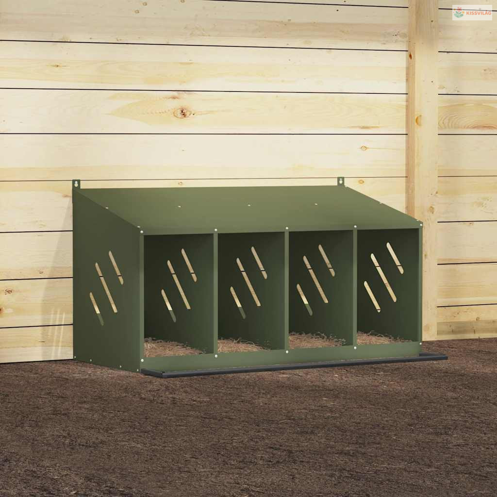 Olívazöld fémből fém csirke fészekrakó doboz 4 rekesszel