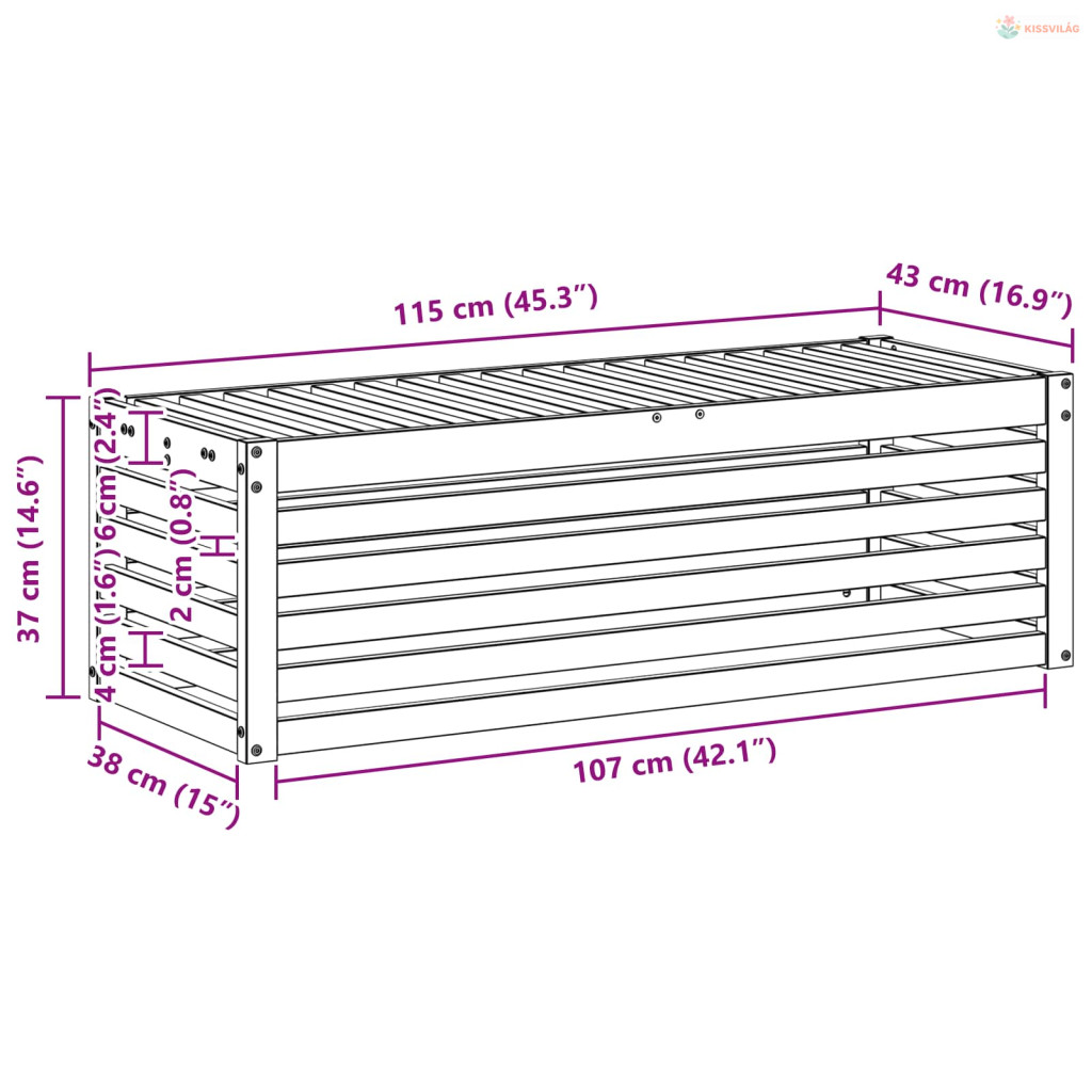 • Általános dimenziók: 115 x 43 x 37 cm (Ho x Szé x Ma)